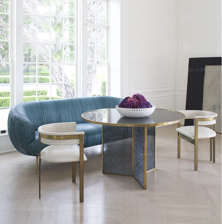 标志性的Elliot椅结合了简洁的线条和经典的乡土风格。这款餐椅或休闲椅的特点是配有一对黄铜吧台腿,要么是抛光黄铜,要么是油光锃亮的黄铜。 座椅有各种精选面料和皮革可供选择。