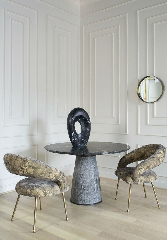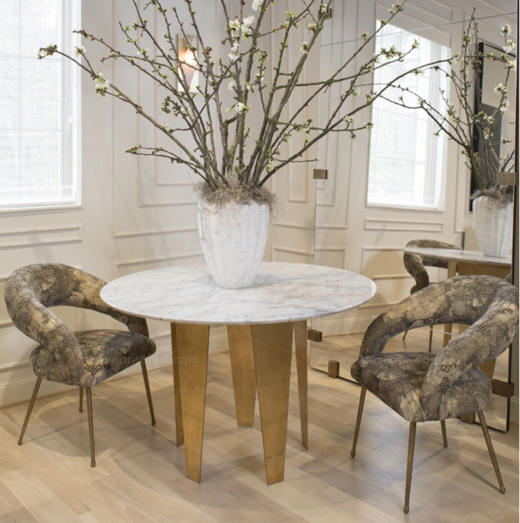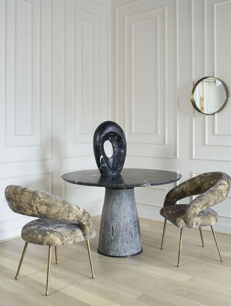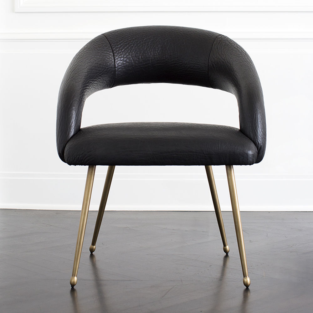 Laurel餐椅采用醒目开放的后背,紧凑的软垫座椅和柔和圆润的轮廓。 它位于抛光黄铜的锥形铸造黄铜腿上。 非常舒适,是休闲用餐理想选择。 提供精选面料和皮革。