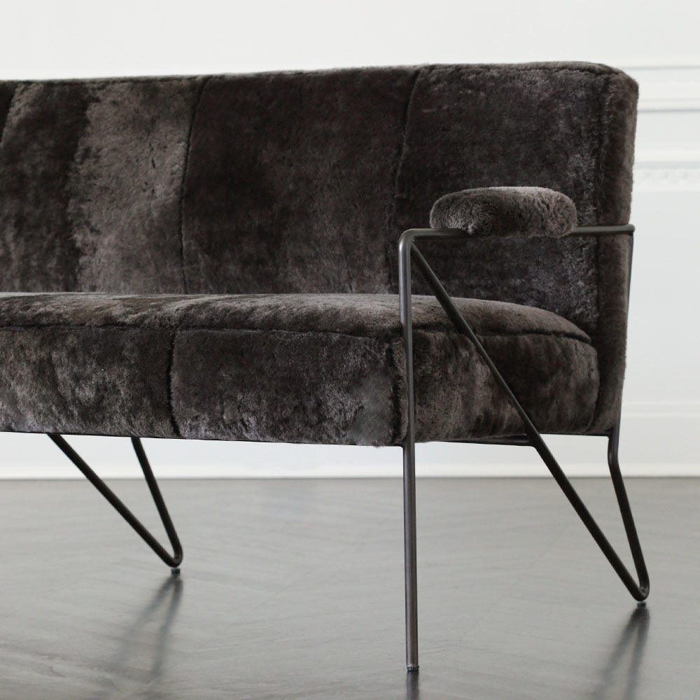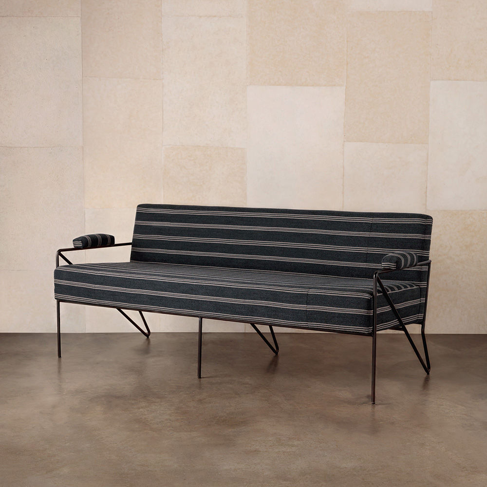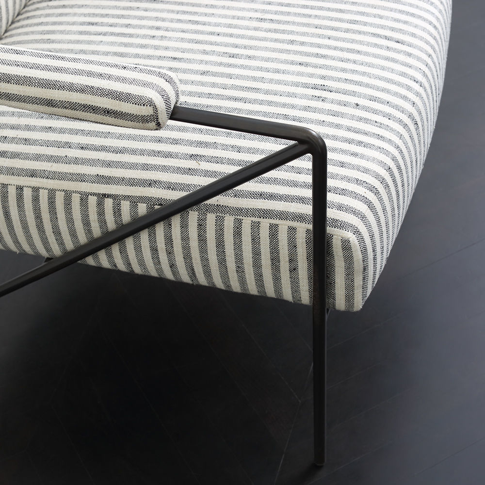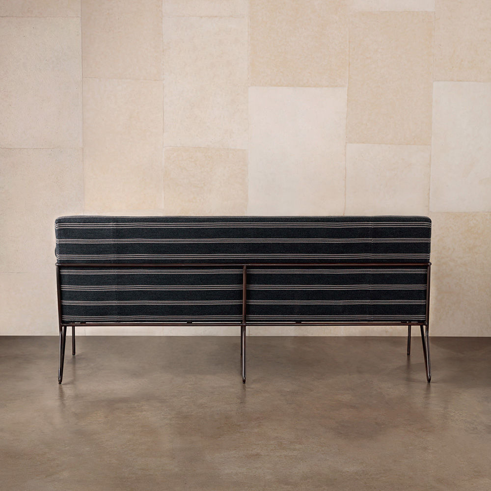 休闲而优雅的Emmett Settee在发夹后腿上设有一个亚光黑色不锈钢线性框架。 座椅和靠背提供轻松的直立座椅位置,使其成为完美的偶尔或此商品在我们的洛杉矶工作室手工制作。图书馆沙发选择。 腿具有多边形滑动以保护地板。