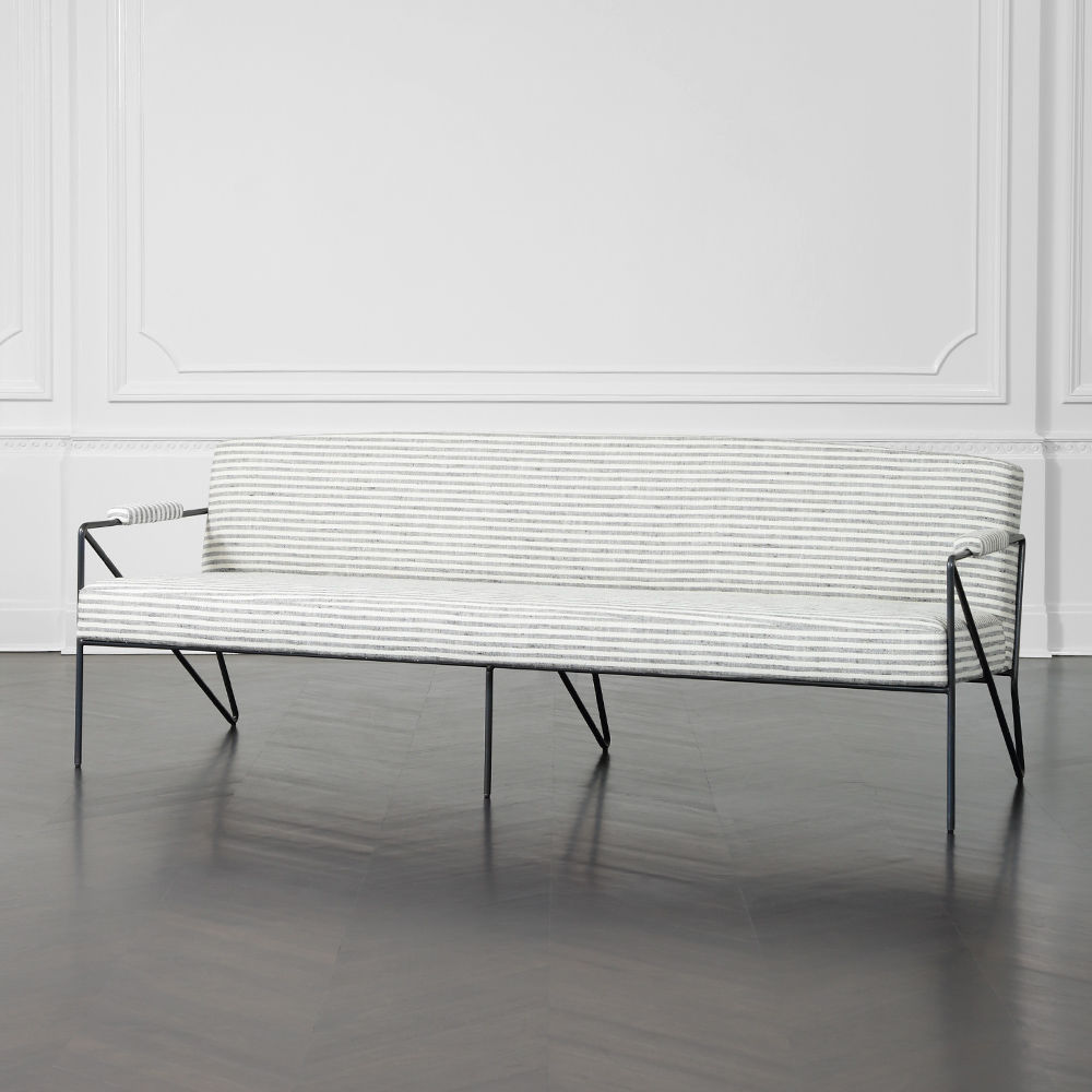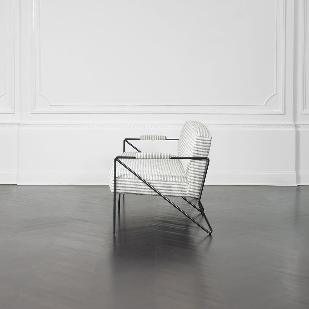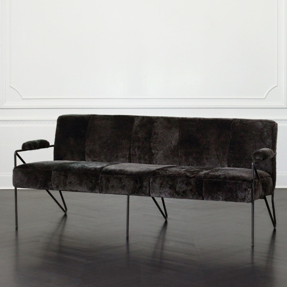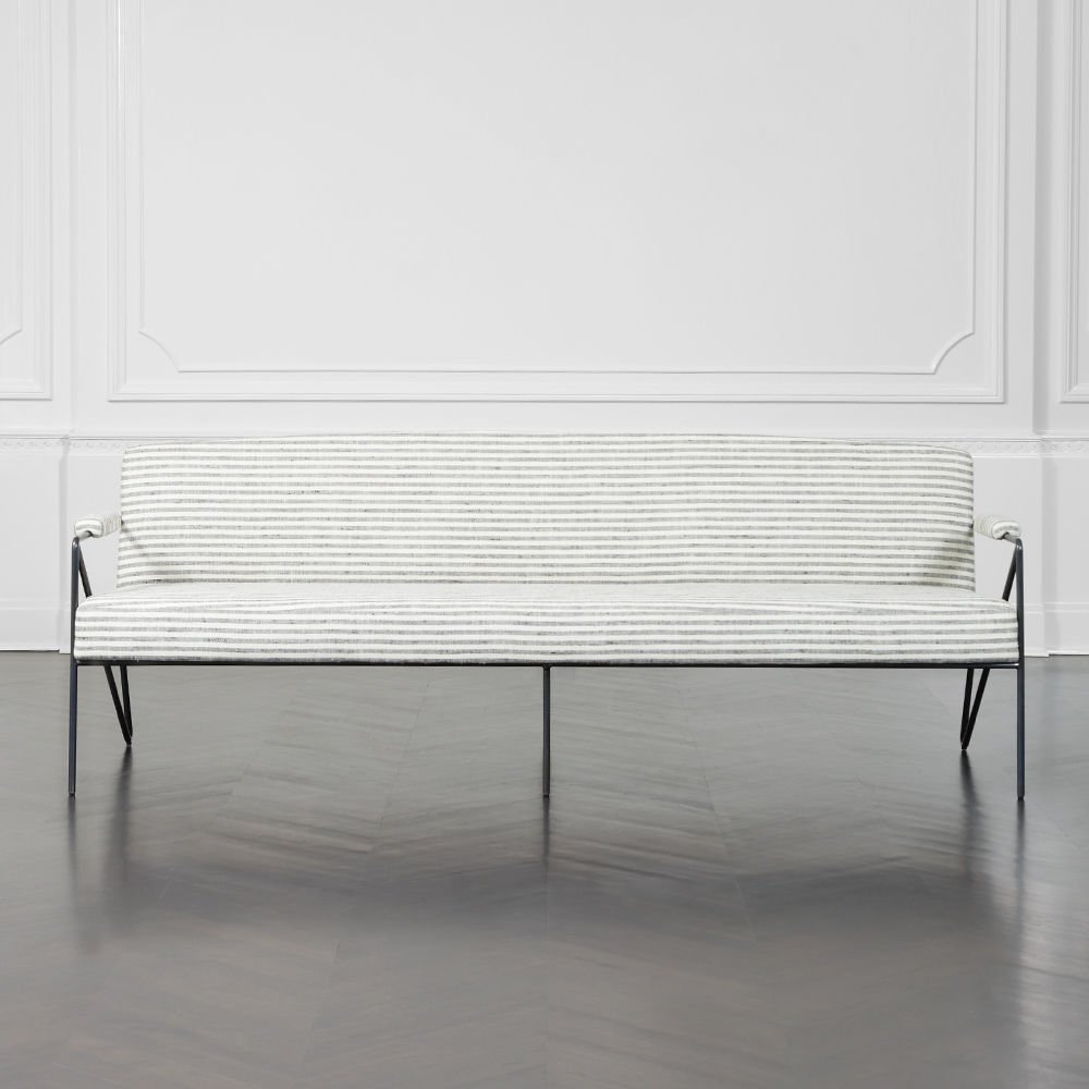 休闲而优雅的Emmett Settee在发夹后腿上设有一个亚光黑色不锈钢线性框架。 座椅和靠背提供轻松的直立座椅位置,使其成为完美的偶尔或此商品在我们的洛杉矶工作室手工制作。图书馆沙发选择。 腿具有多边形滑动以保护地板。