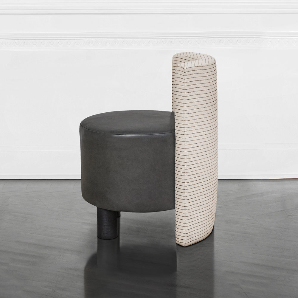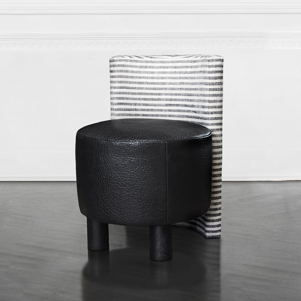 这种低矮的椅子或凳子结合了一些简单的体量和纹理,创造了一个戏剧性的临时座椅。鼓形座椅与垂直的背部相接,形成后肢,椅子的前部位于一对粗壮的圆柱形肋腿上。 这是梳妆台或休闲客厅布置的理想座位选择。 腿部饰面选项包括漂白,天然和黑檀木。 提供精选面料和皮革。