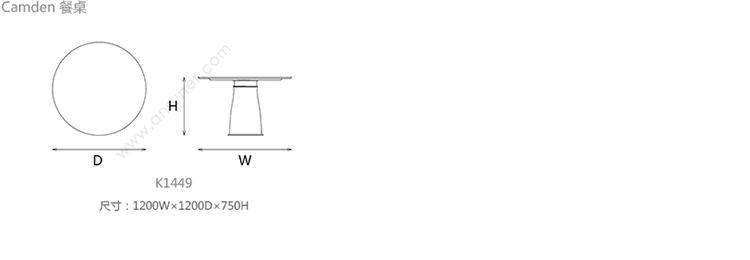 Camden 餐桌 系列尺寸/示意图