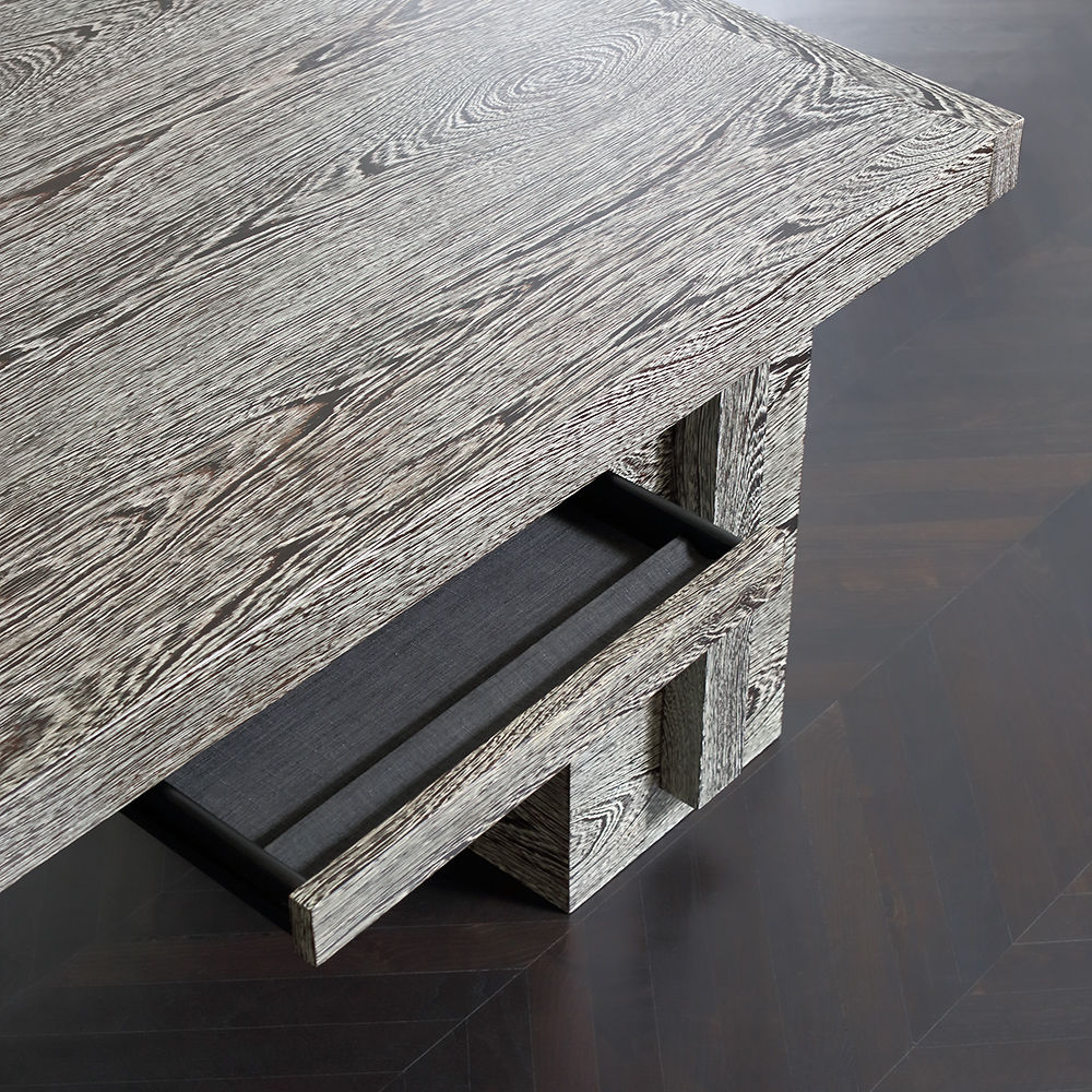 优雅的Elevado书桌具有简约的建筑轮廓,采用我们的标志性象牙色和拉丝Wenge饰面。 宽敞的桌面位于Wenge纹理框架下方,有一对精致的亚麻衬里抽屉,配有铅笔托盘细节和木质滑动装置。