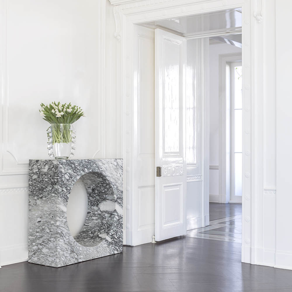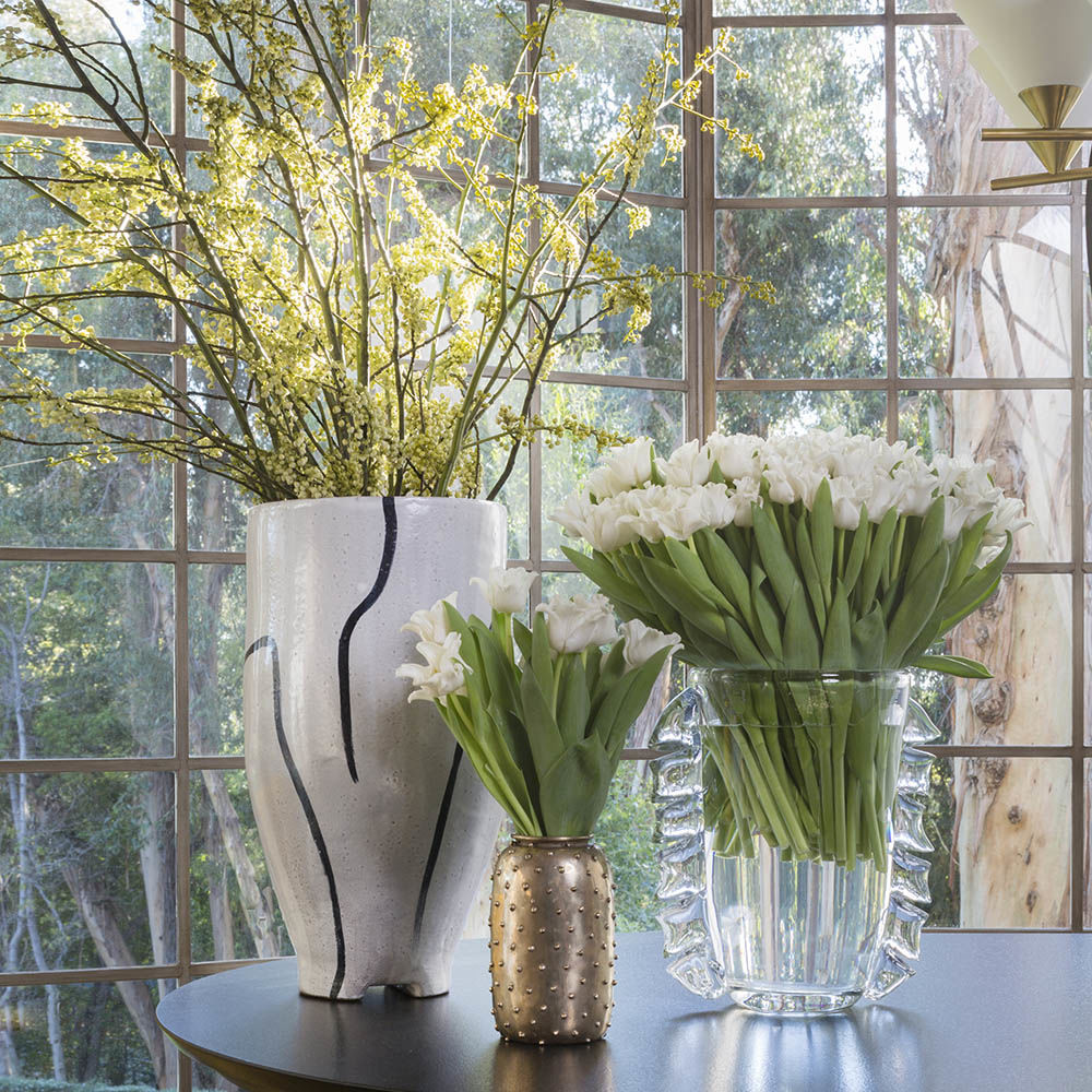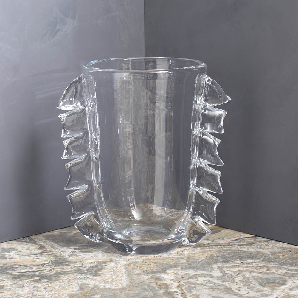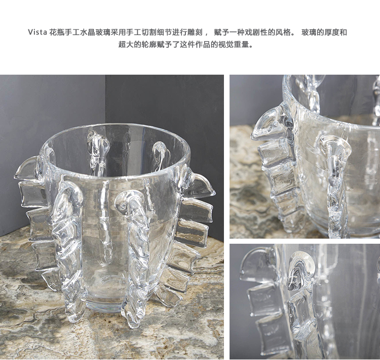 Vista花瓶手工水晶玻璃采用手工切割细节进行雕刻,赋予一种戏剧性的风格。 玻璃的厚度和超大的轮廓赋予了这件作品的视觉重量。 Vista花瓶非常适合插花或作为独立装饰。