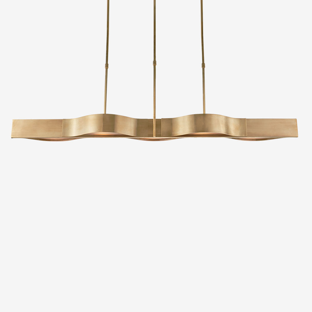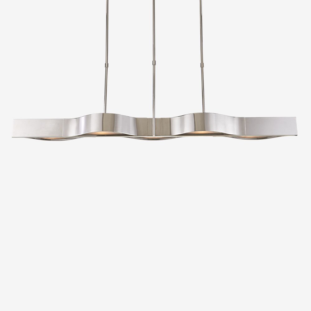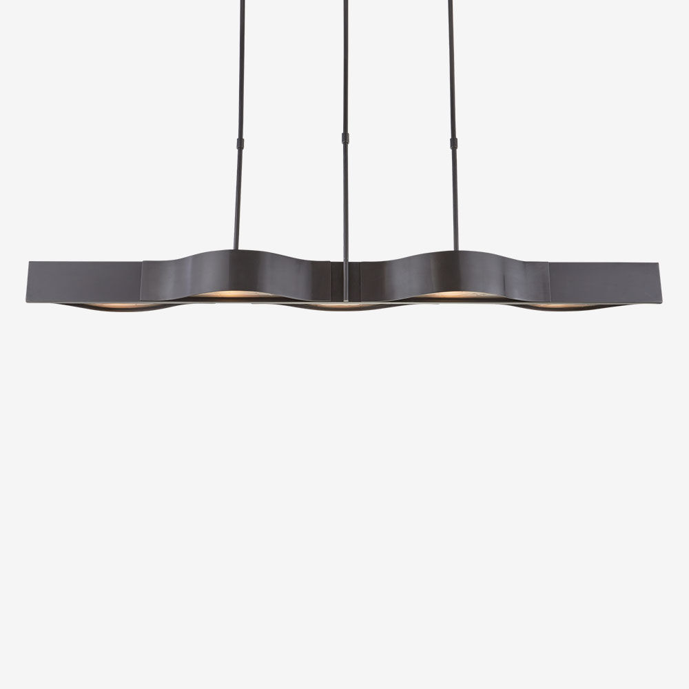 Avant线性吊灯散发出简约的现代感,灵感来自线条和曲线之间的纯粹互动。 这款线性吊灯有古铜色,青铜色或抛光镍和磨砂玻璃,适用于潮湿环境。