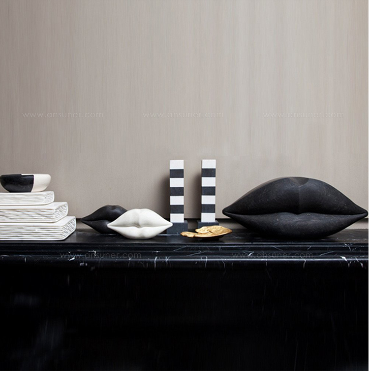 经典之吻,黑色马奎纳和白卡拉卡塔磨砂大理石,灵感来自经典雕塑形式。 标志性的家居饰品为您的书柜或餐桌增添了撩人的气息。 由一块石头工匠手工雕刻而成,永恒而别致的大理石之吻为任何空间带来更高级的奢华感。