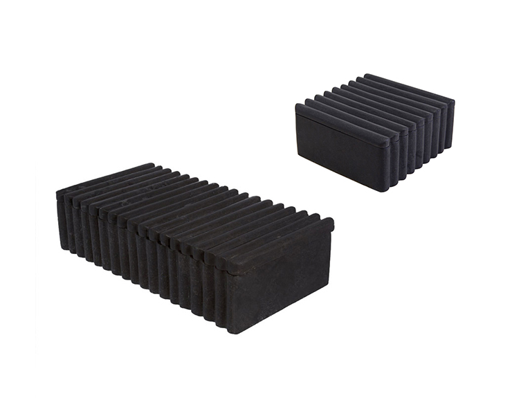 具有一个由手工雕刻的黑色或白色卡拉卡塔大理石制成的带罗纹的盒子。凯利对材料的选择使这件作品与众不同,它具有强烈的男性线条。一个完美的别致和简约的桌面或书桌配件。