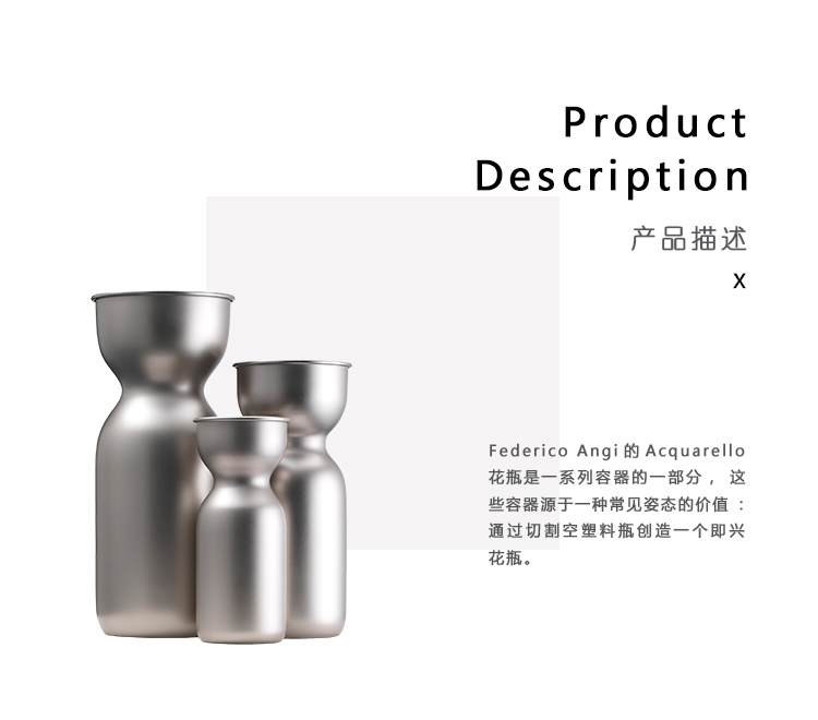 Federico Angi的Acquarello花瓶是一系列容器的一部分,这些容器源于一种常见姿态的价值:通过切割空塑料瓶创造一个即兴花瓶。 通过这种方式,通过成形黄铜金属板,临时使用的容器已经被重新适应,从而成为日常生活的庆祝。 Acquarello花瓶有三种尺寸和高度,有抛光黄铜和镀镍黄铜。