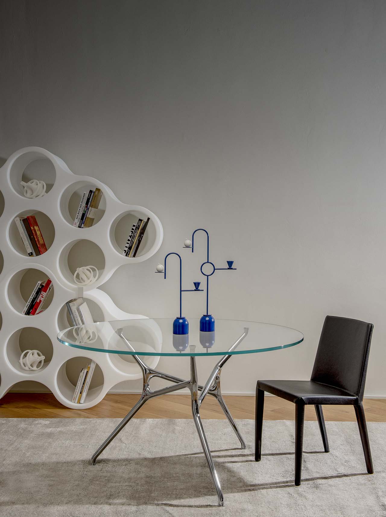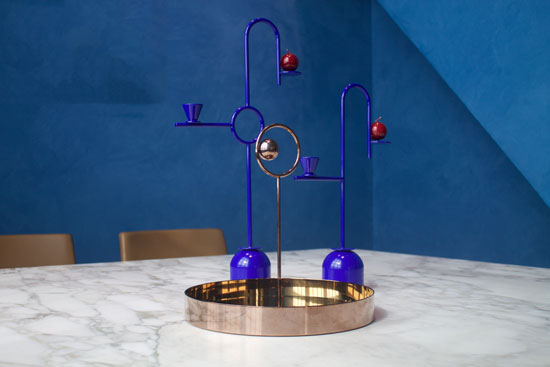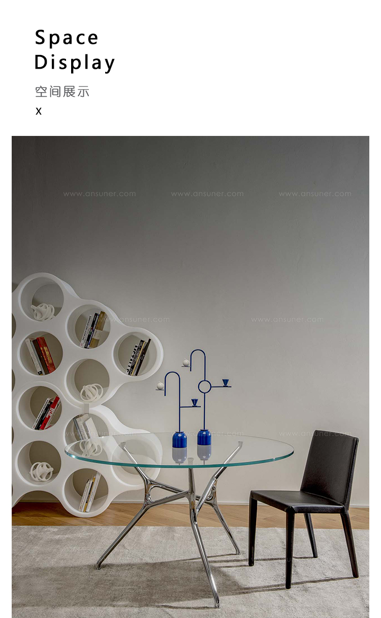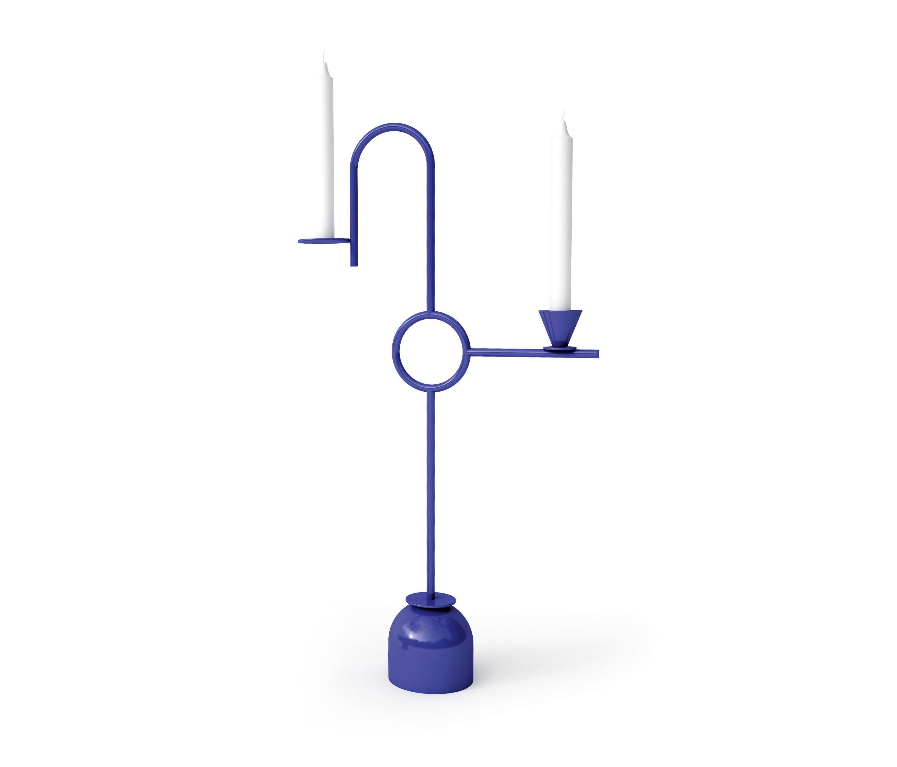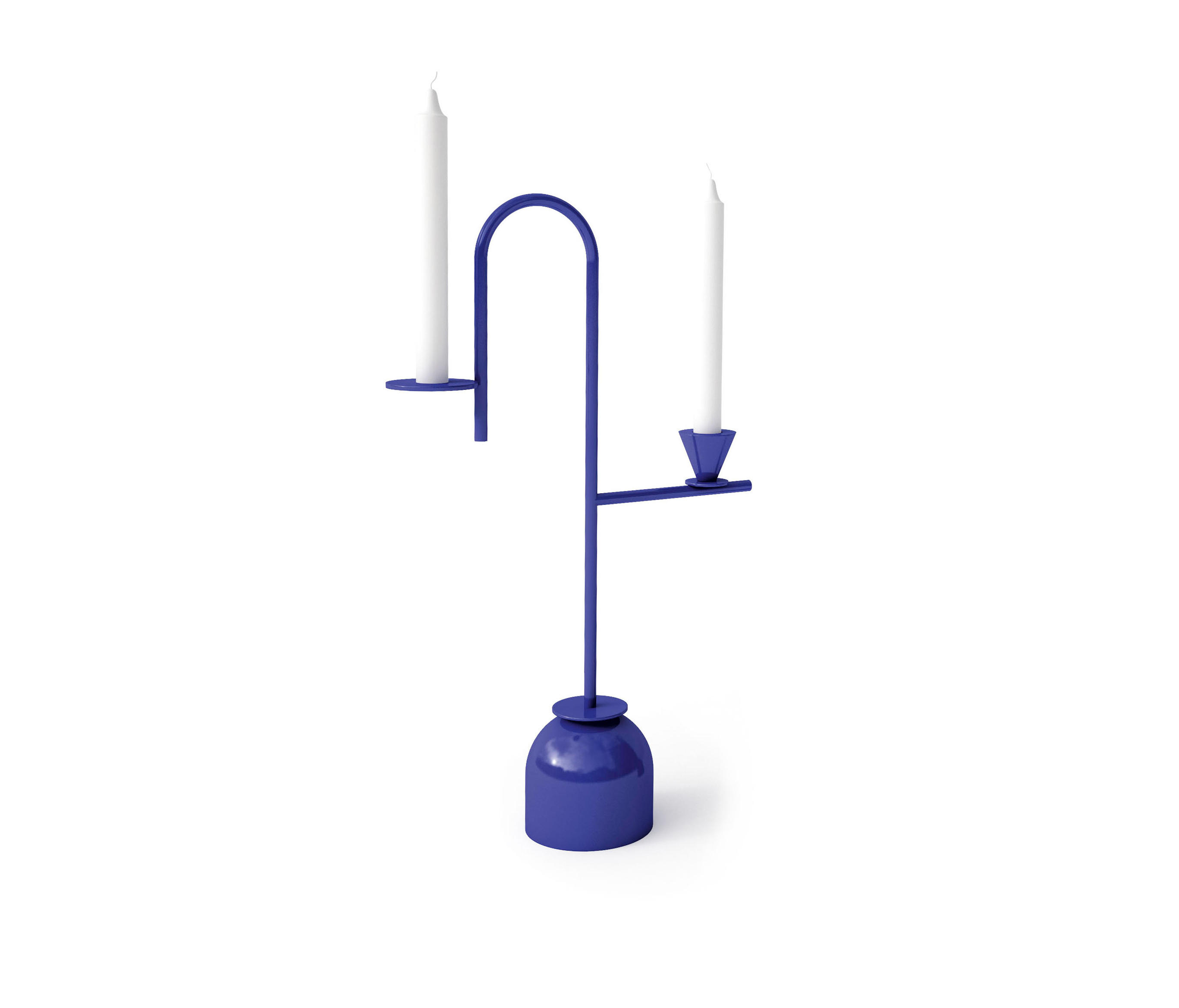 这对蓝色烛台优雅的几何形象是安博anbo(中国)Thomas Dariel设计的。 对于这个产品,他用细长的弯曲茎杆定义了空间,用靛蓝色照亮。蓝色烛台由弧形层压金属制成,带有金属底座。