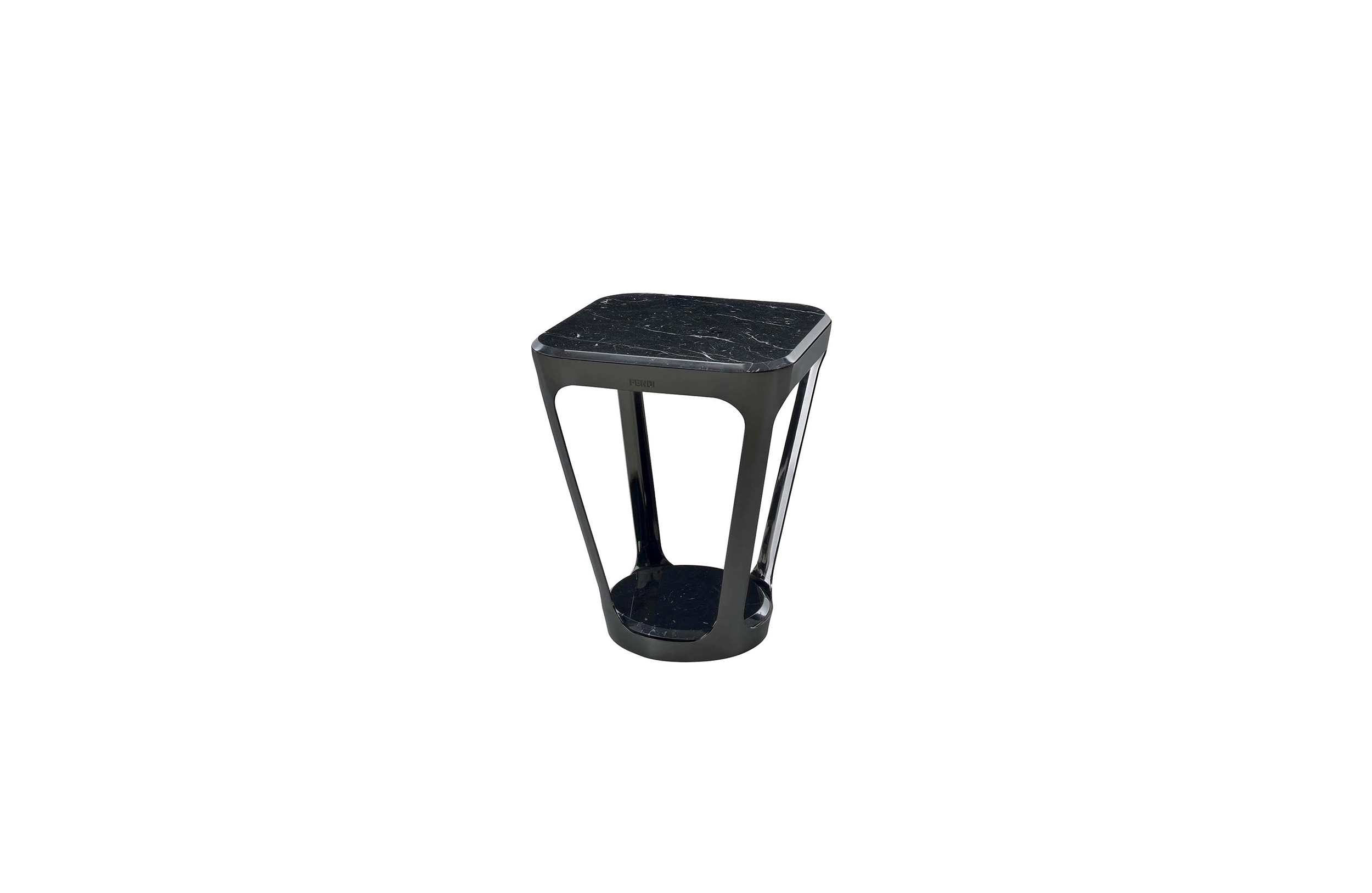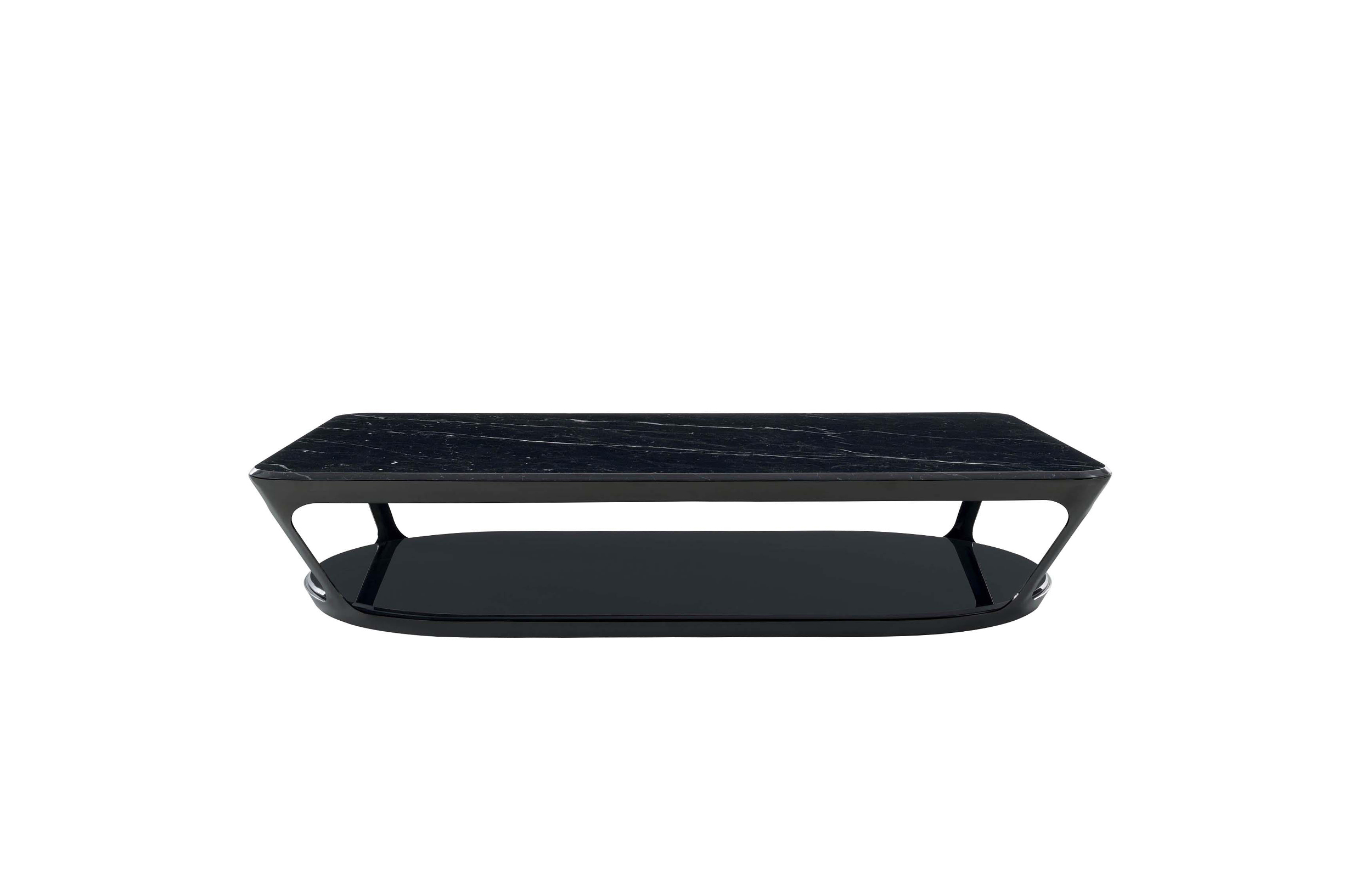 皮埃尔咖啡和侧桌的特点是整体的顶部和框架在减少的厚度。它们有一个外部金属“皮肤”,有大的开放表面和深灰色的表面。这种轻盈,加上稳定性,在表面上很明显,似乎漂浮着,有复杂的地面细节,都是缎质玻璃和珍贵的大理石。