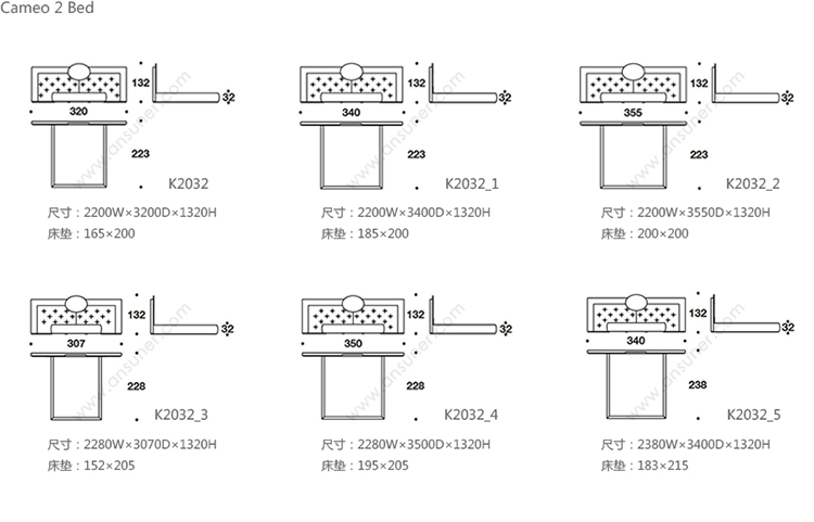 Cameo 2 Bed 系列尺寸/示意图