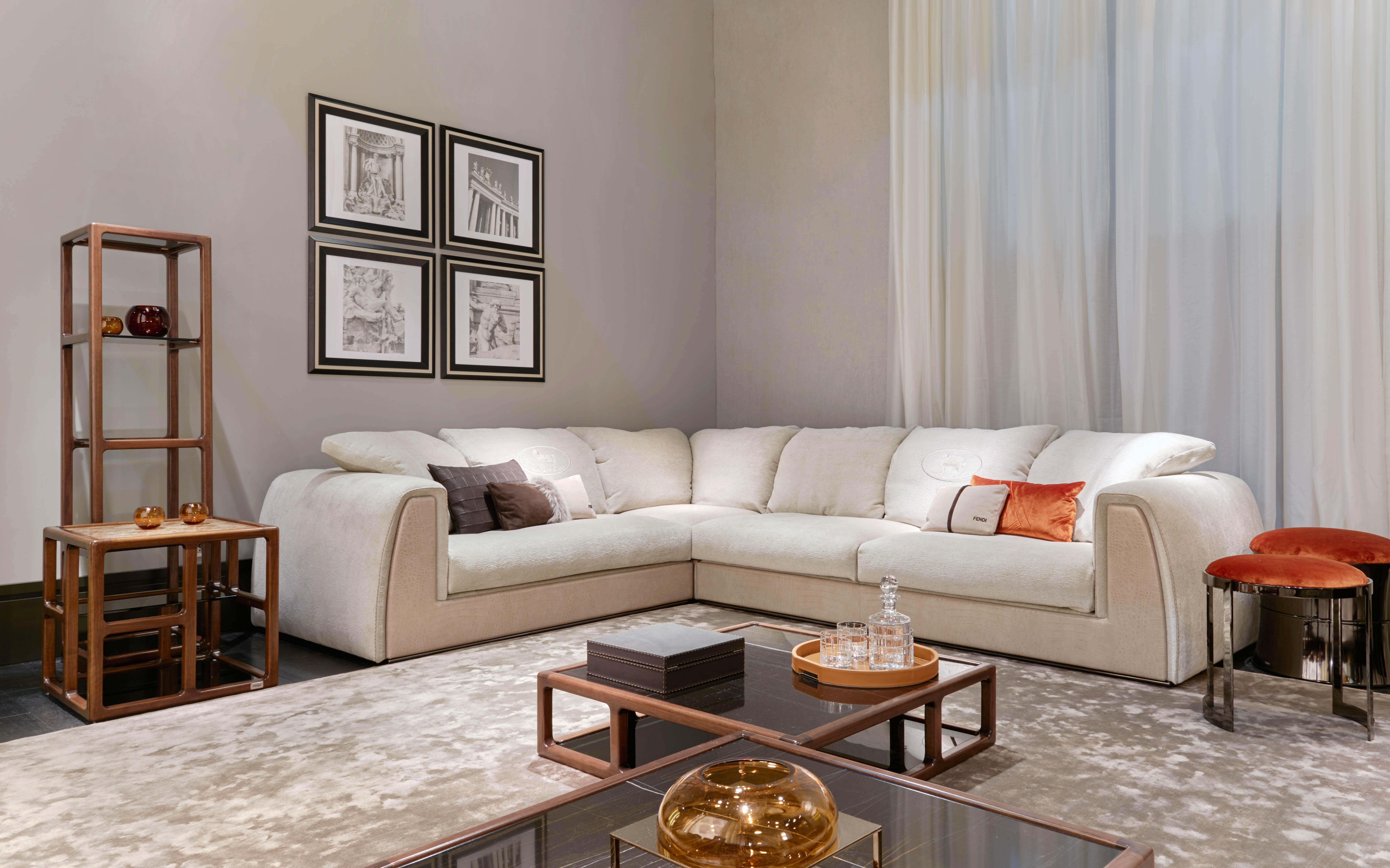 Frontal cover available also in fabric or printed leather (see price for component on the price list). Fabric or leather piping on armrests