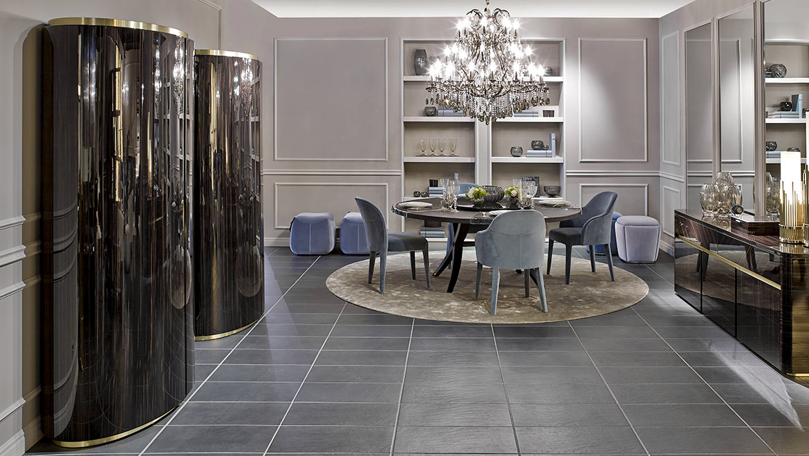 FRAME/SEAT Wood padded with Polyurethane and Fiberfill. Polished steel profiles or covered in coordinated fabric or leather