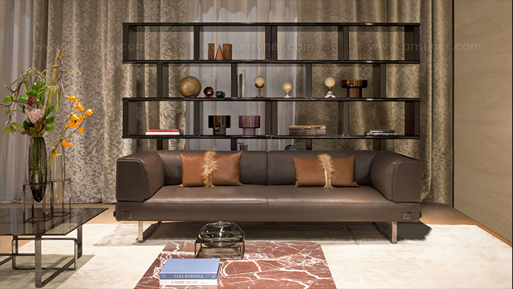 Soho Lite沙发是用钢的线性支撑元件重新塑造的。由于皮革装饰的中性色调,线性结构呈现出新的特点,而在技术面料版本中,精细材质的性能保证了柔软性和舒适性。buckles对芬迪的美学代码表示敬意,成为吸引人的细节和功能的连接器。