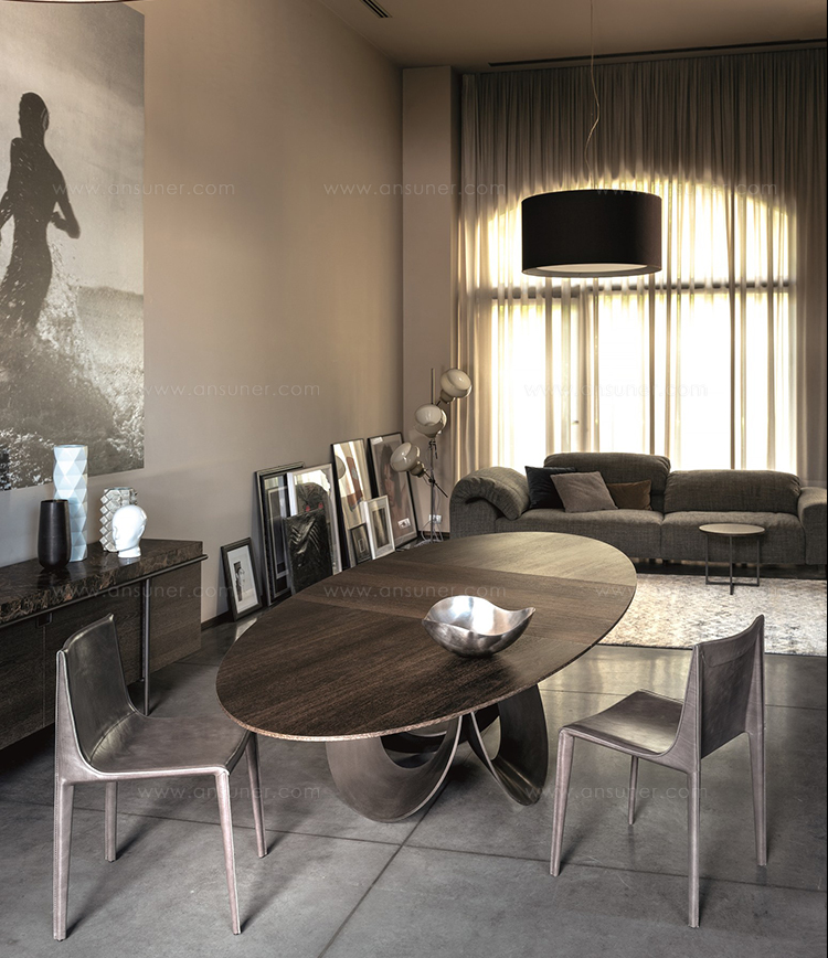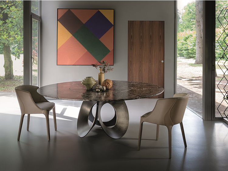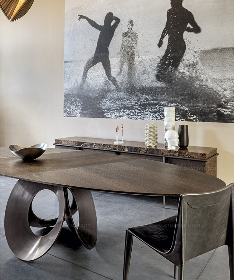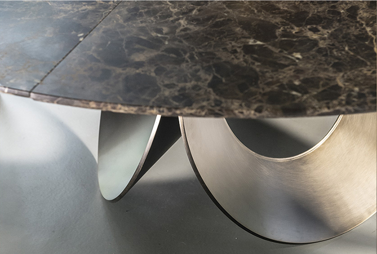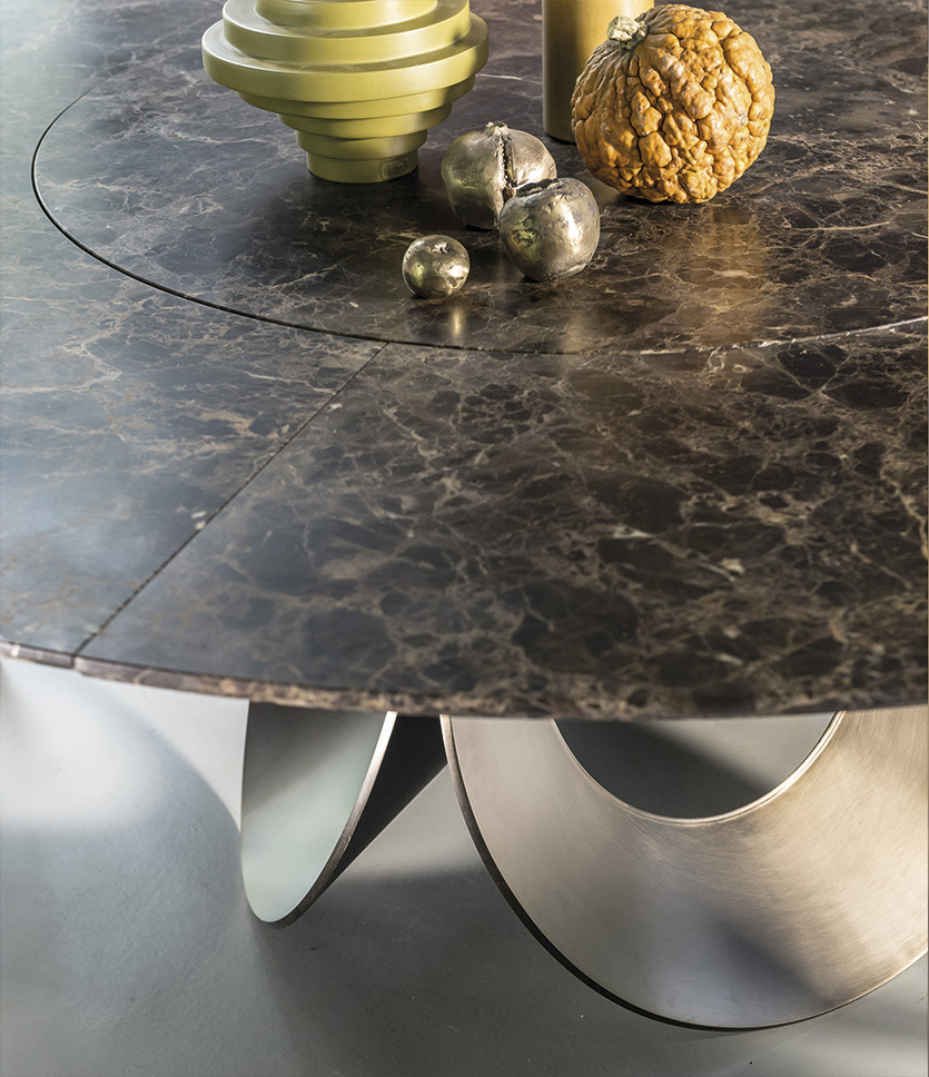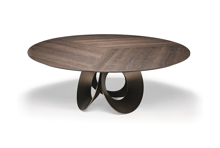 由吉诺·卡罗罗(Gino Carollo)设计的Oracle餐桌是圆形的几何形状,是完美的象征。安博网页版的形状表现出整体性和中心性。圆形或椭圆形的桌面是由MDF镶嵌在莫卡橡木或柚檀木上。直径为200CM的桌面也可以使用啡网纹大理石桌面。它独特的底座就像生命之花的构造:三个重叠的圆圈,似乎围绕着一个点旋转。该金属的底座可用云母棕色、黄铜、钛或新草灰色抛光。
