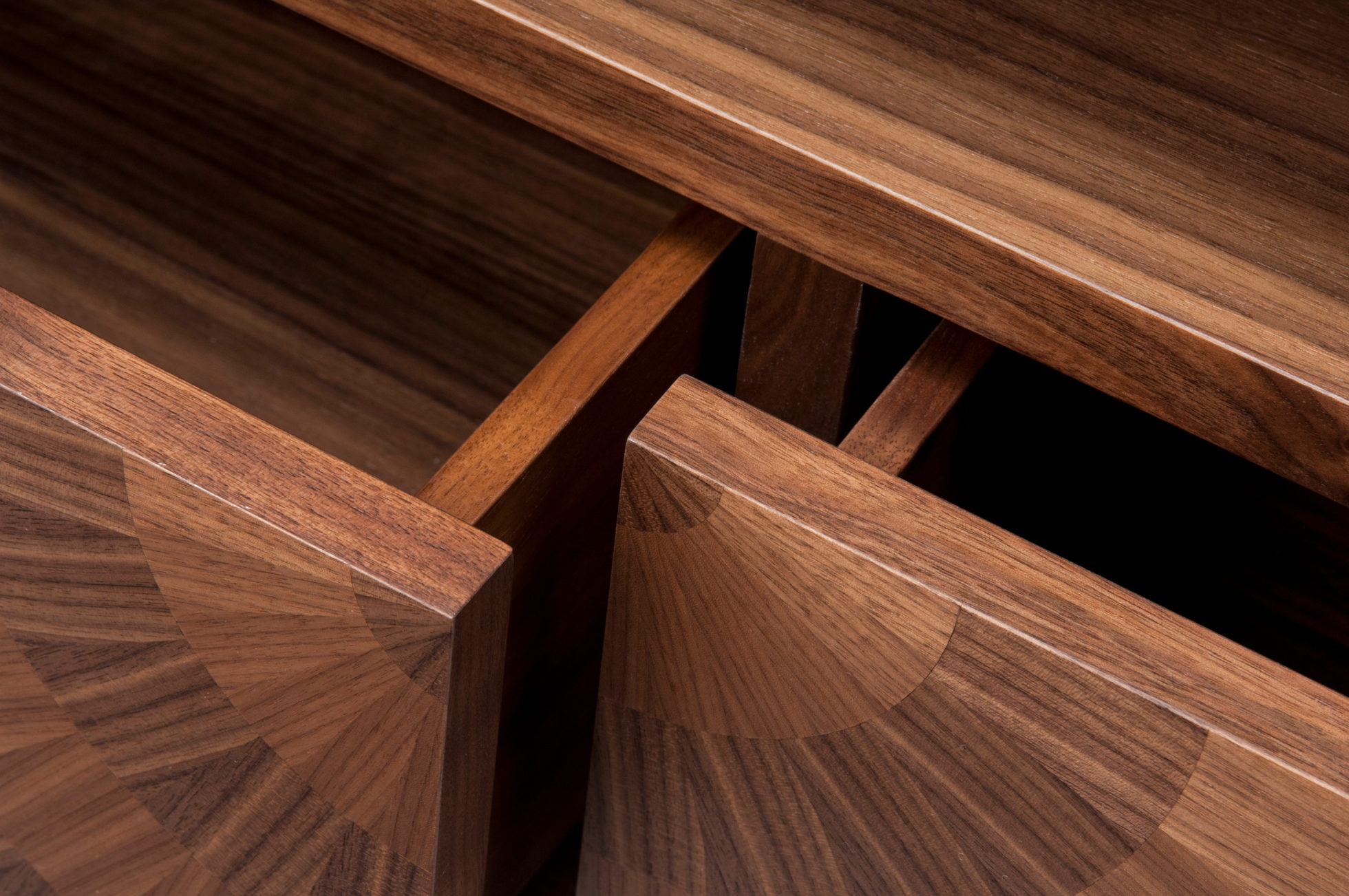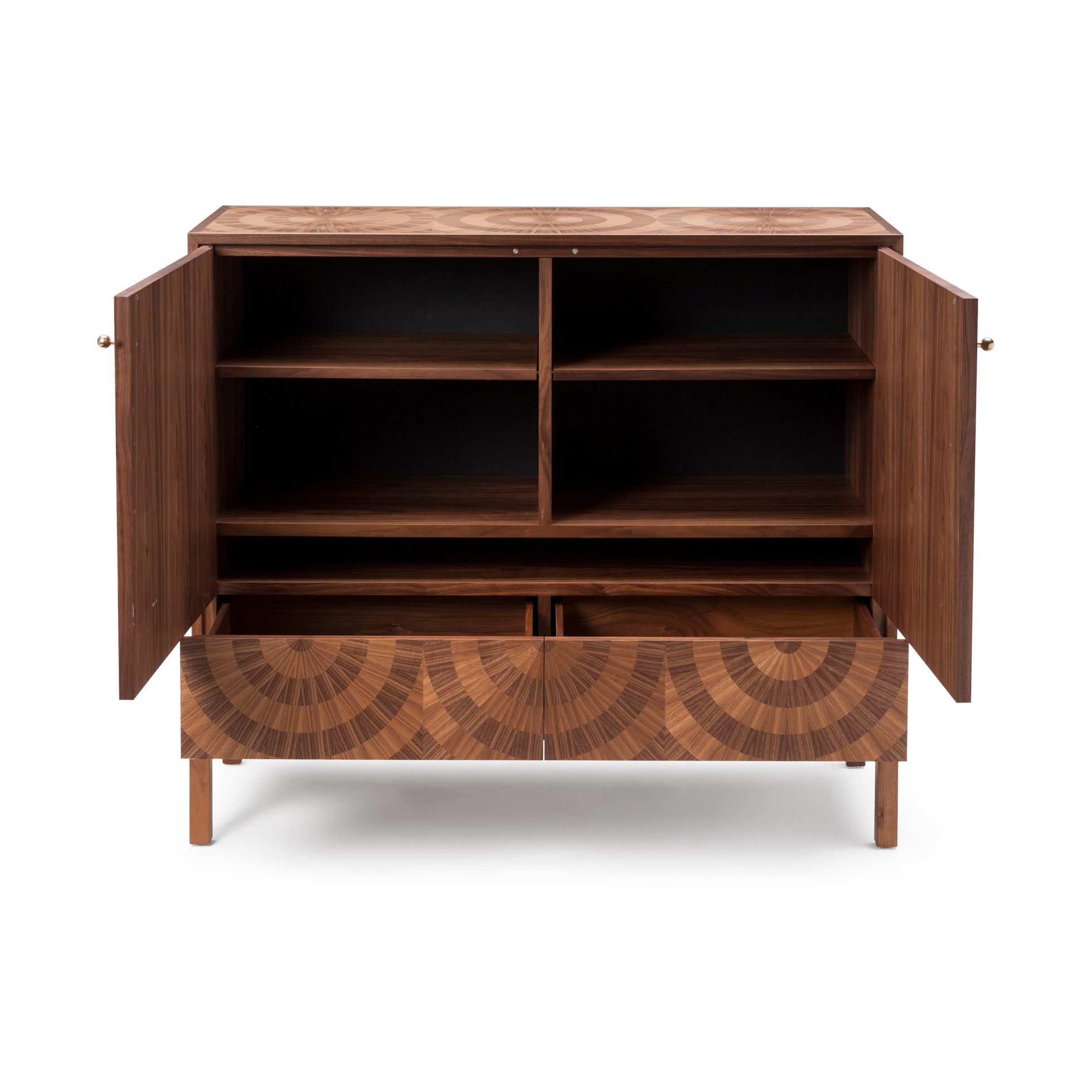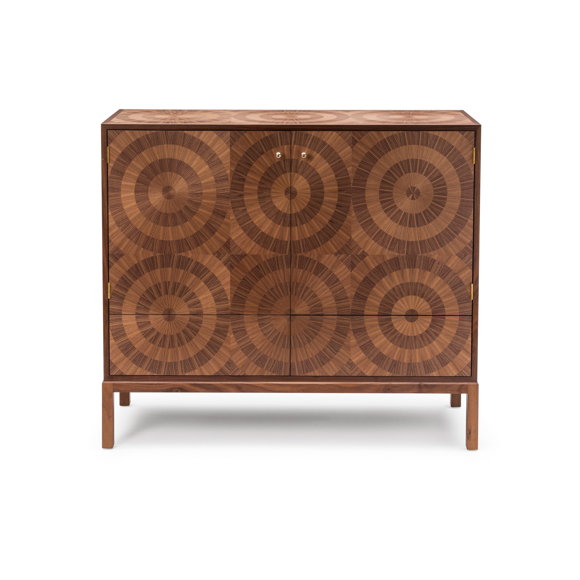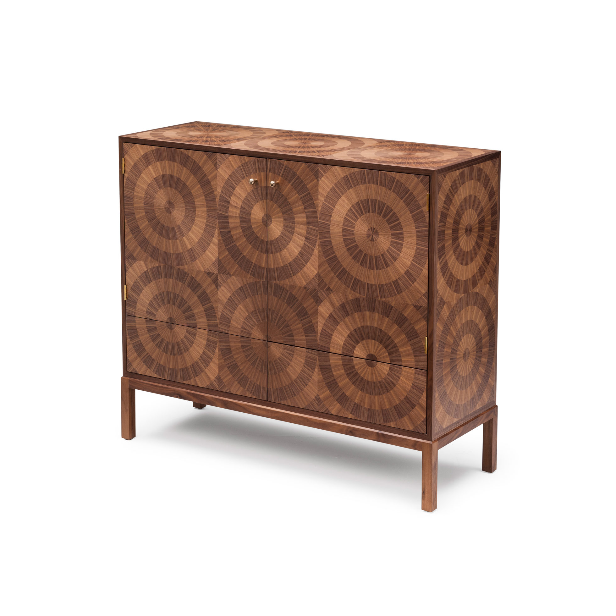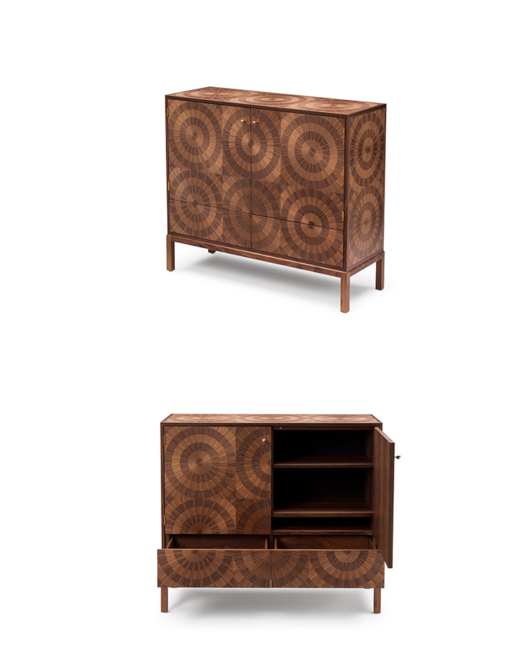 “看着我的眼睛,看着我的眼睛......”,在坚实的胡桃木底座上用两种色调的美国黑胡桃木贴面精心制作,一个简单的成为一个令人着迷的储物柜,随着时间的推移会更加生动。