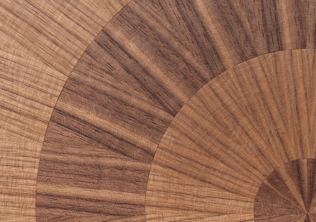手工铺设的径向同心圆形对比色调和美国梧桐切割在坚实的抛光青铜腿上,这款特别版的Catalyst咖啡桌远远望去,而坐在附近则是错综复杂的美丽。
