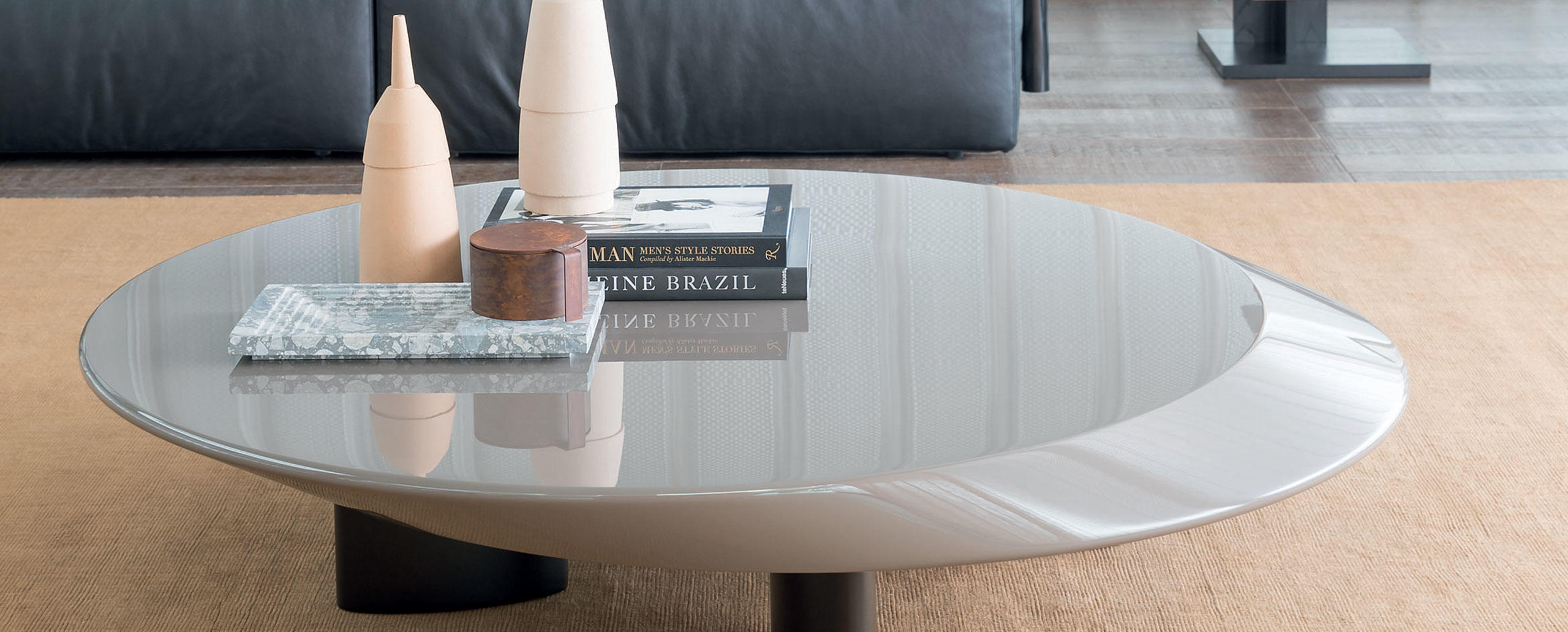 茶几上,雕刻和明显的动态形式,于1985年由夏洛特Perriand偶尔回顾致力于她的des Arts Decoratifs博物馆在巴黎。 Cassina 2009年再版,只有在黑漆木材涂装生产它。 今天表正在享受一个“第二人生”由于引入新的光泽的颜色漆完成:中国红、糖渍栗子和黑色,给它一个年轻的感觉是非常实用的现代空间。