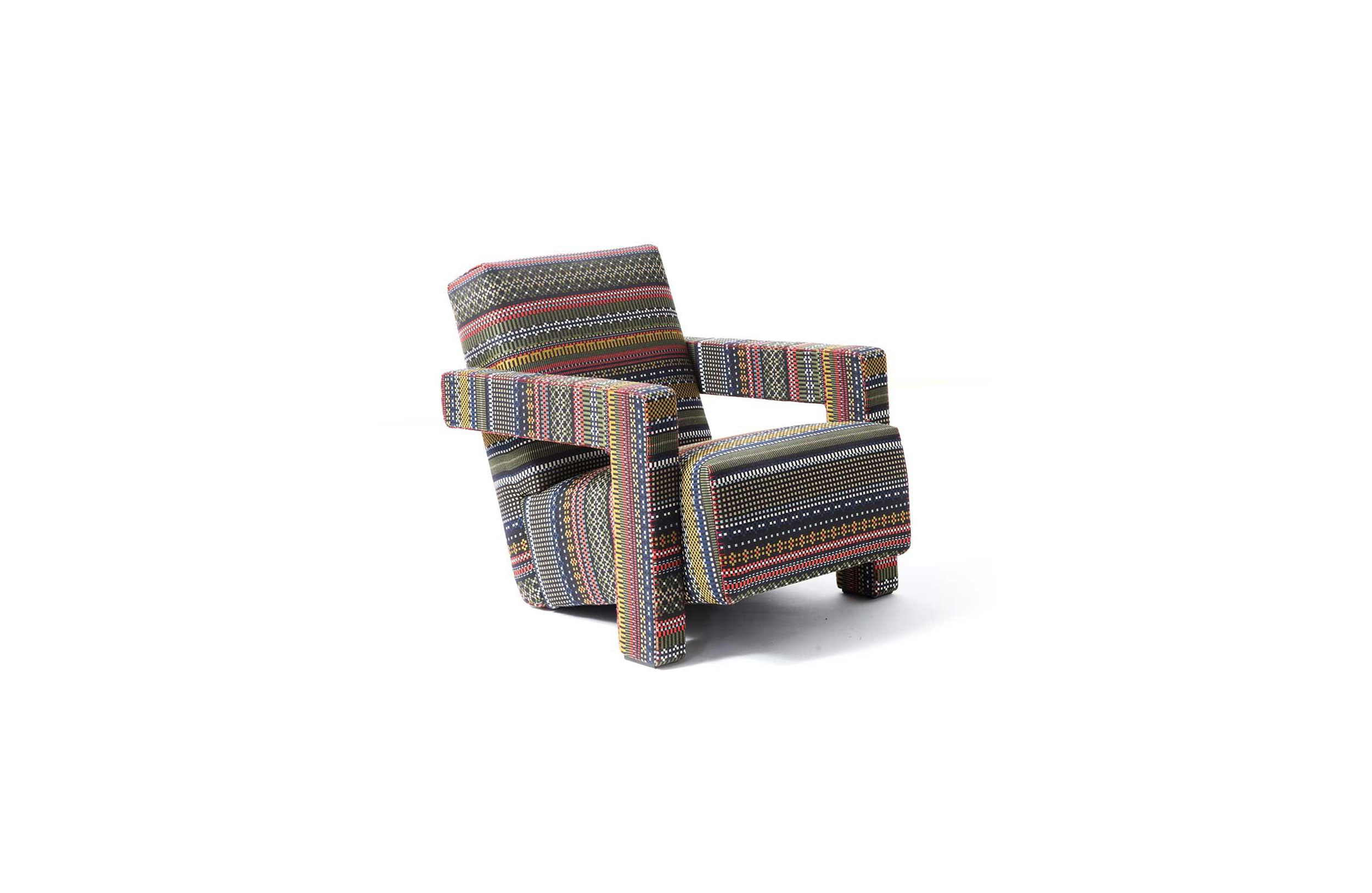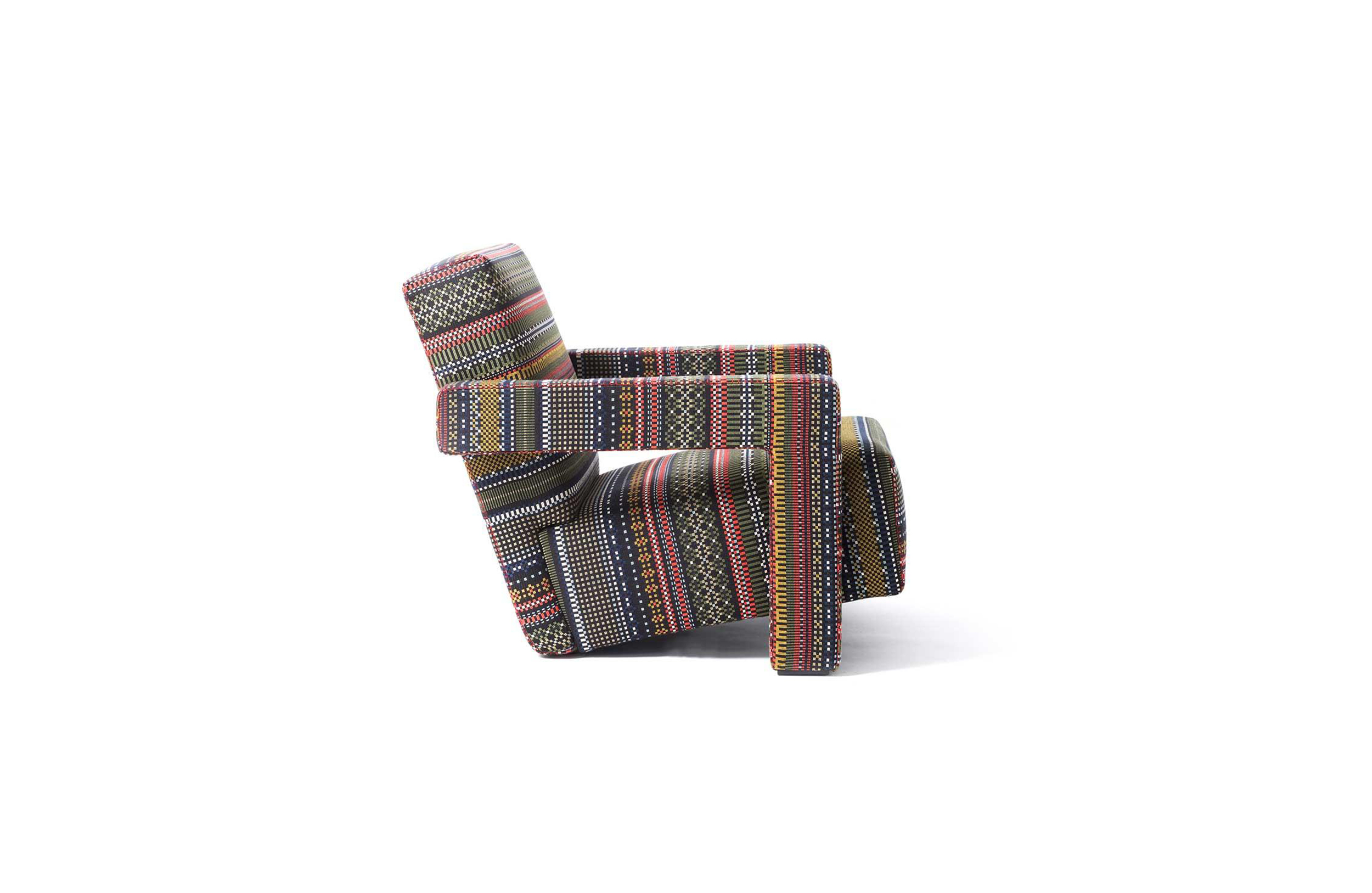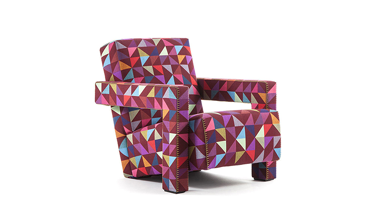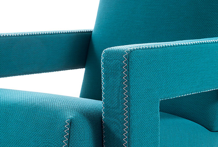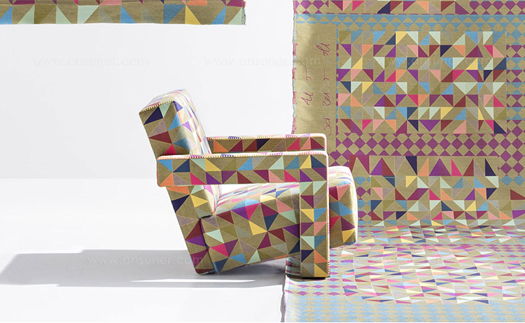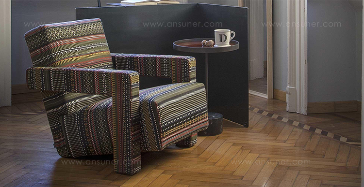 Rietveld是一位荷兰建筑师,他有强烈的实验倾向,他和蒙德里安是1917年新塑料德斯提尔运动的创始人之一,于1935年设计了Utrecht模型。这个模型是为阿姆斯特丹的Metz&co百货公司创建的,因此为大众市场设计,并代表Rietveld决定采用更“市场导向”的方式来舒适和放松。以五种不同颜色的两种可见的拼接(鞍针或齐格扎格)为例,强调了元素的分解。