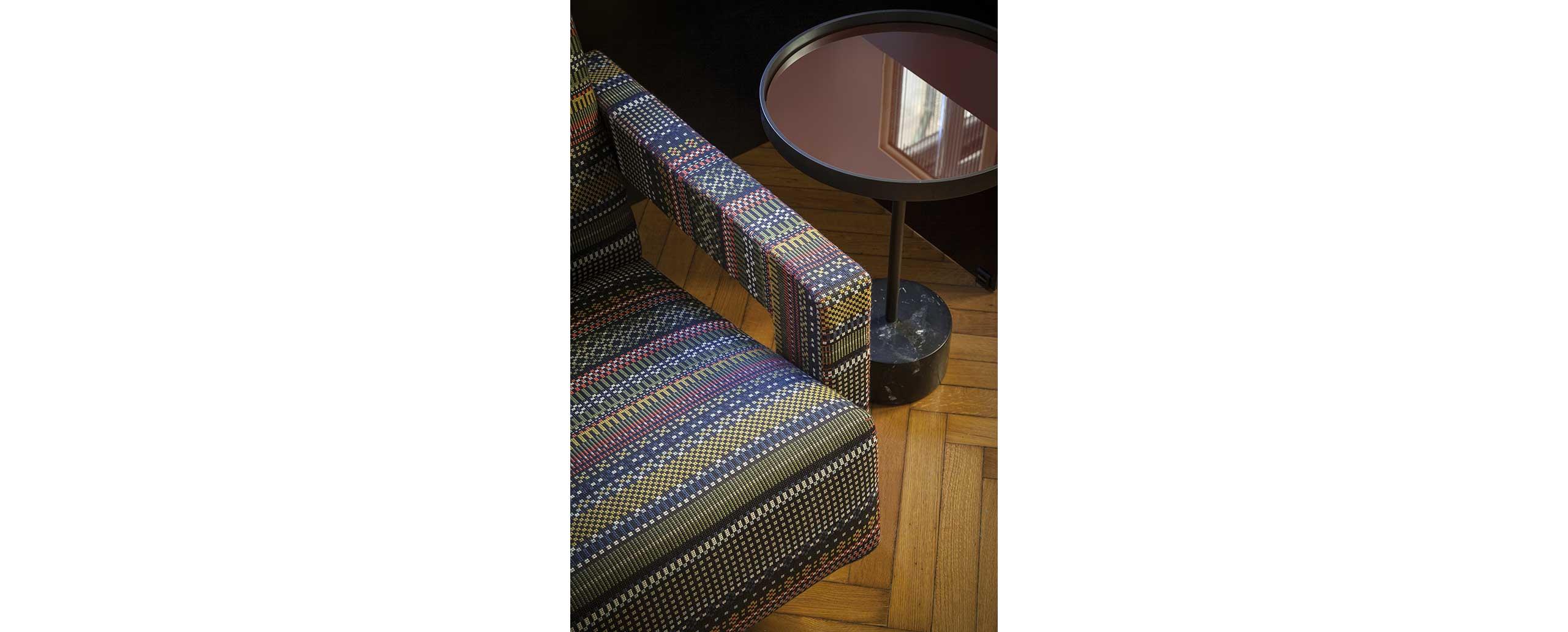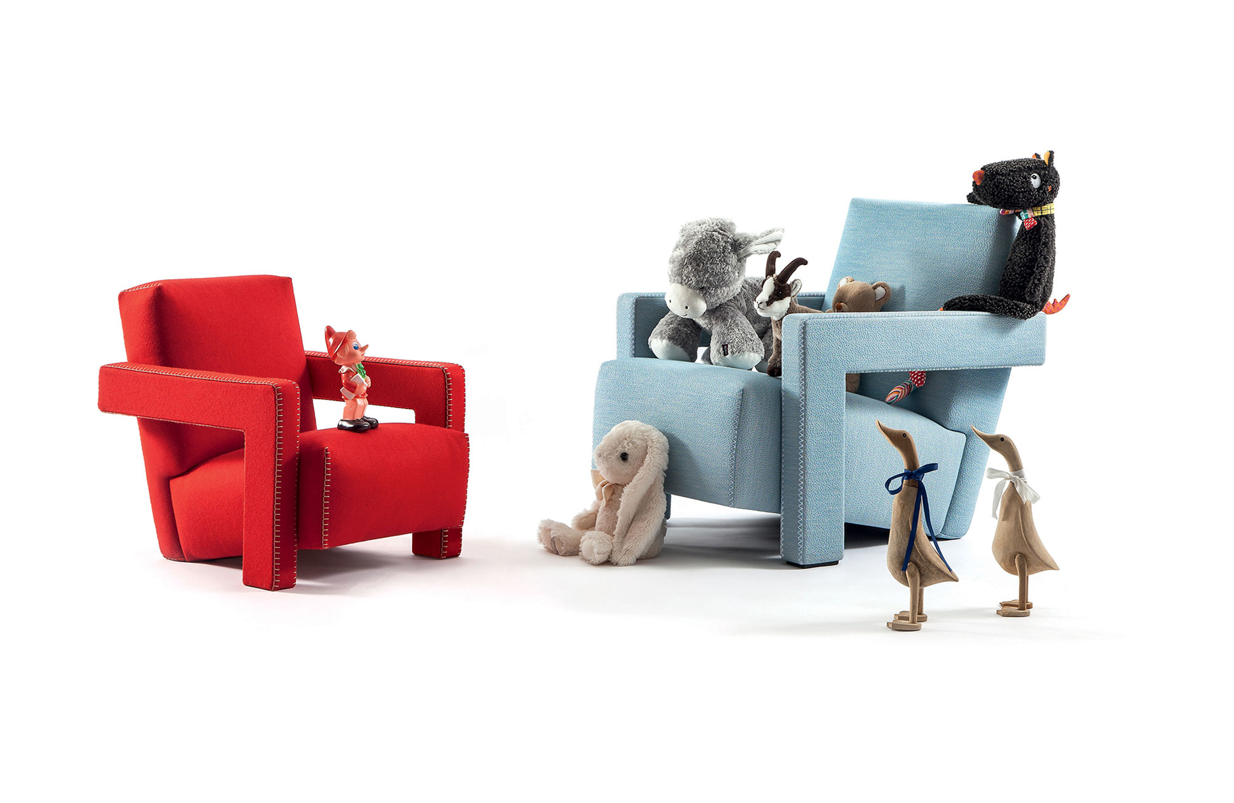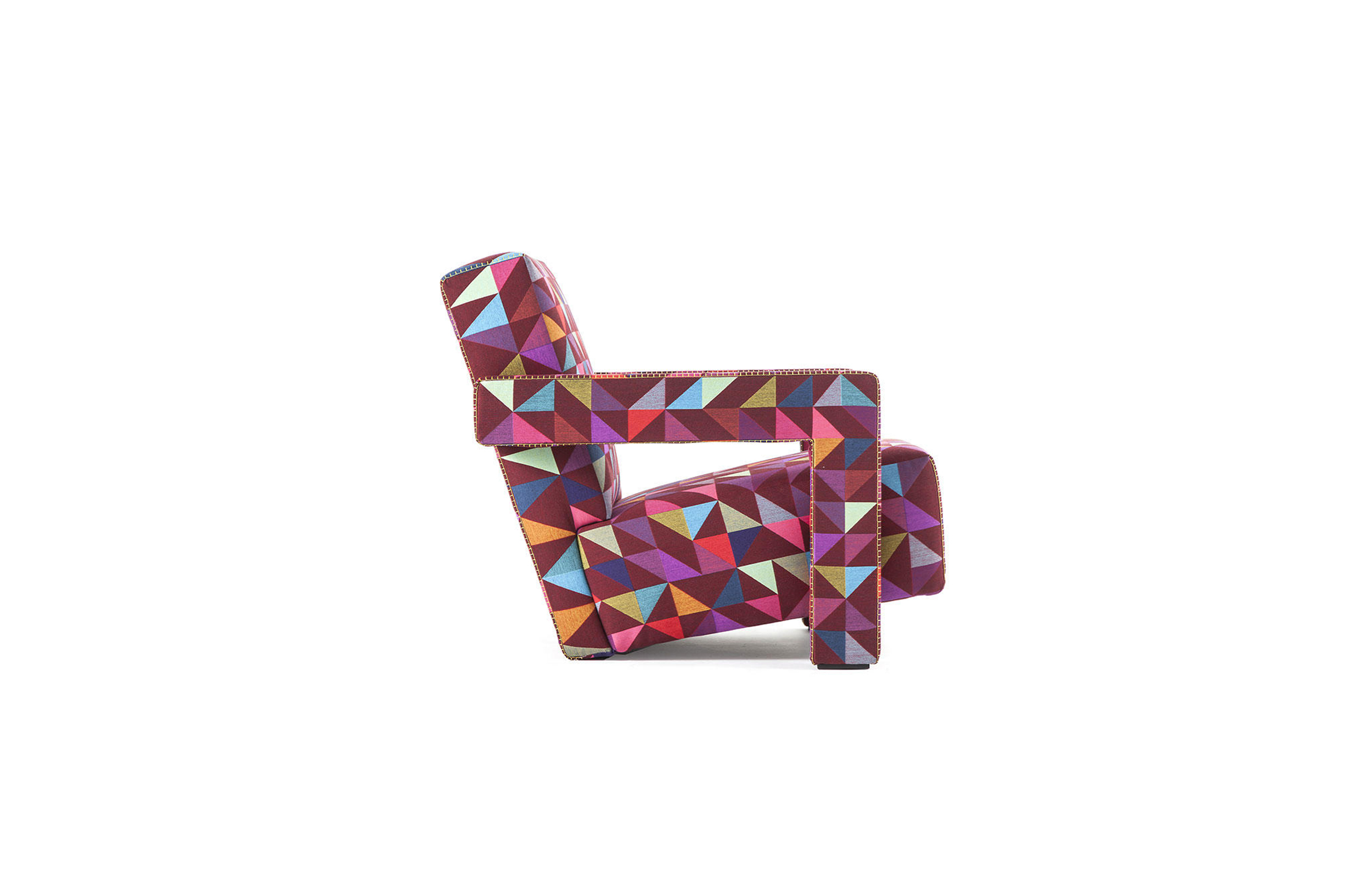Rietveld是一位荷兰建筑师,他有强烈的实验倾向,他和蒙德里安是1917年新塑料德斯提尔运动的创始人之一,于1935年设计了Utrecht模型。这个模型是为阿姆斯特丹的Metz&co百货公司创建的,因此为大众市场设计,并代表Rietveld决定采用更“市场导向”的方式来舒适和放松。以五种不同颜色的两种可见的拼接(鞍针或齐格扎格)为例,强调了元素的分解。