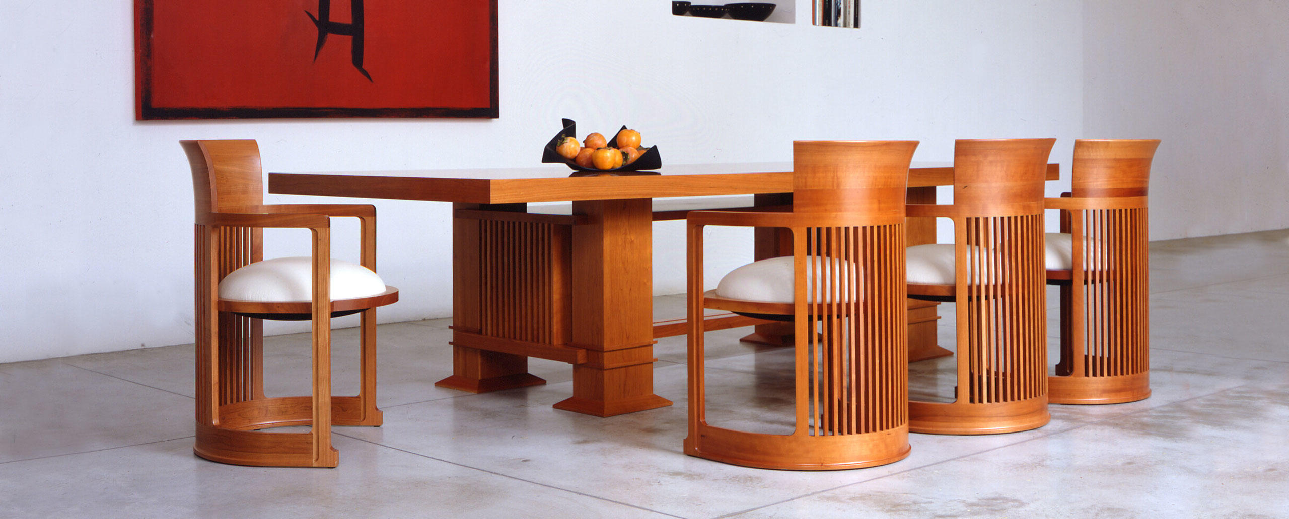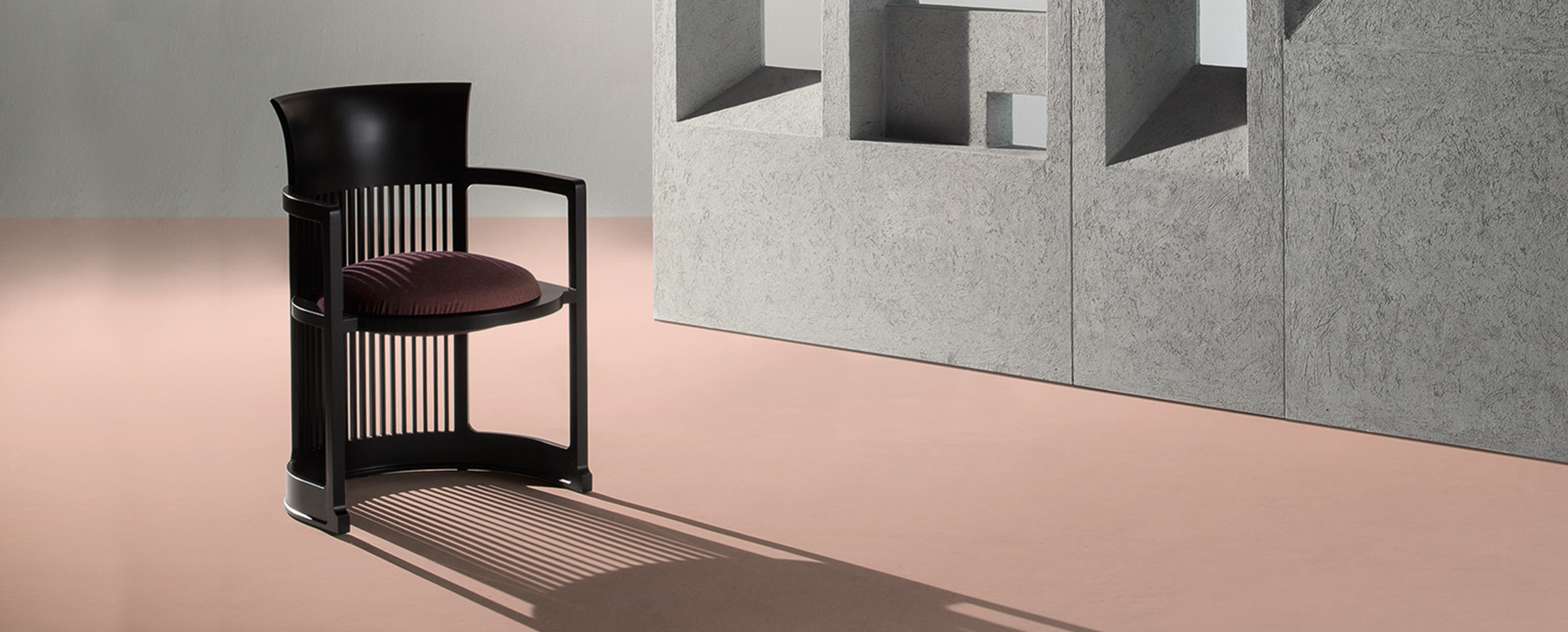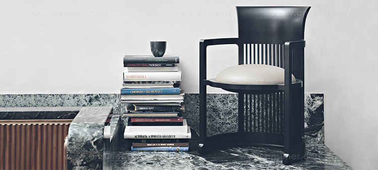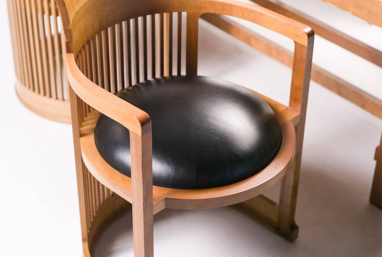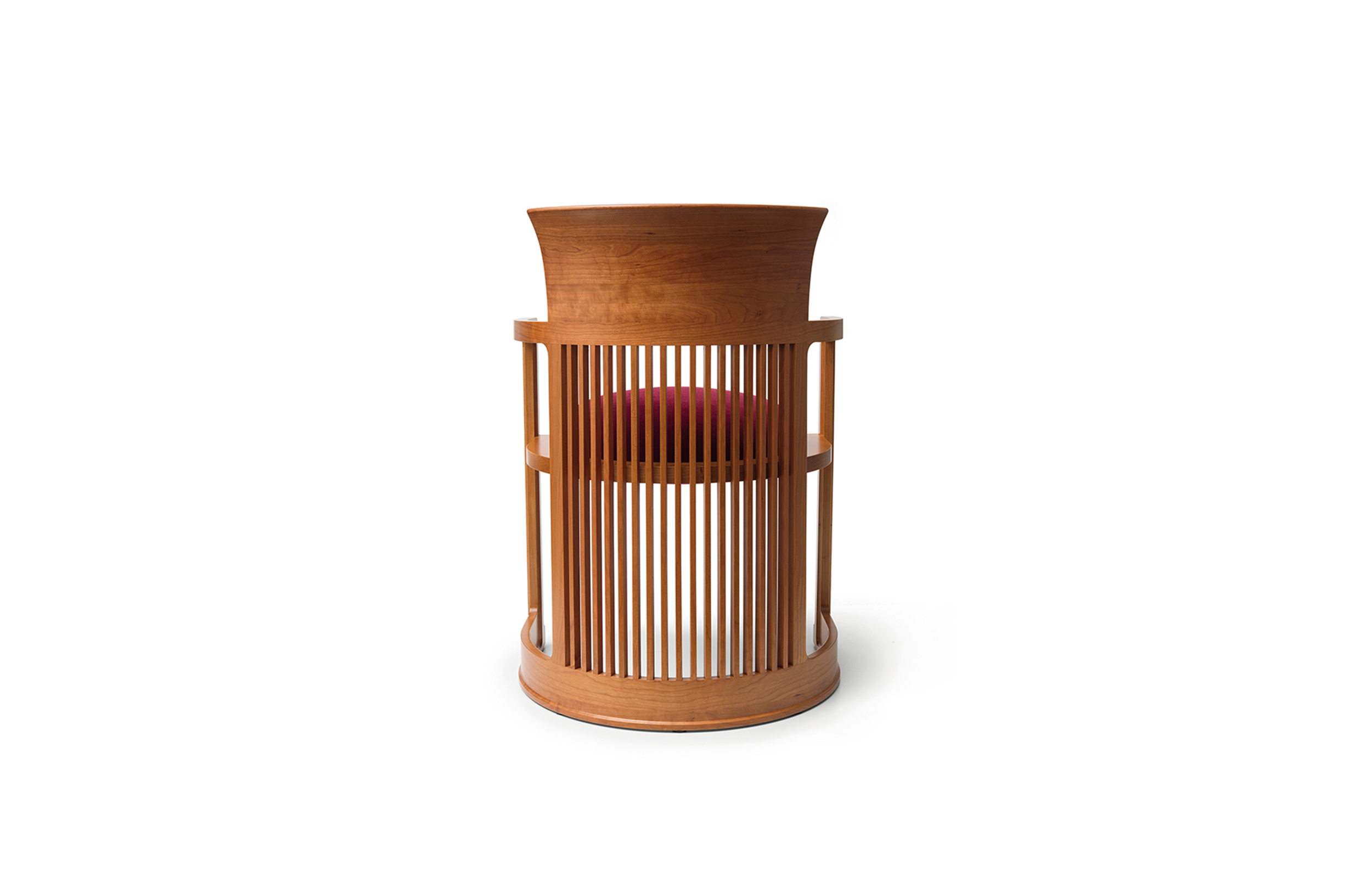 曲背餐椅,采用天然樱桃木、樱桃木色或黑色的胡桃木制造。塑料座面采用聚氨酯海绵和喷胶棉填充。座面软包为皮革或布艺面料。