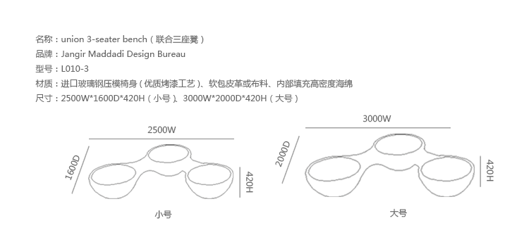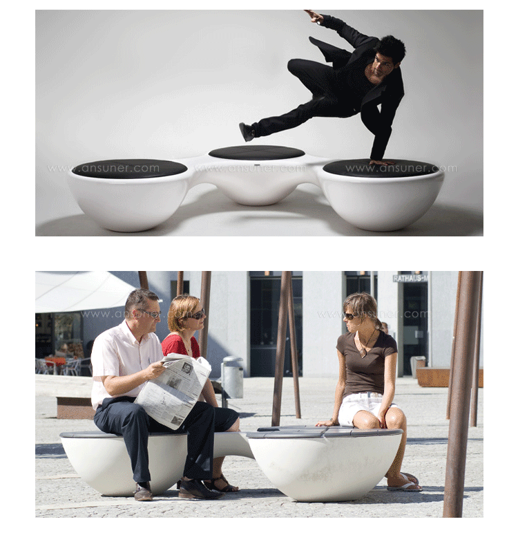 瑞典安博anbo(中国)Jangir Maddadi设计的这款联合座凳系列,可分为双座,三座及多坐,我司主要推出两座及三座,分别为:Union 2-seater Bench(联合双座凳)和Union 3-seater Bench(联合三座凳)。大家都知道,一般的座椅都是可以一个人或多个人一起坐,相互之间都不会受到影响。而这款连体休闲座椅却不同,外形很像一只陀螺,使用起来很像一个不倒翁,上面最多可以坐四个人。但是安博anbo(中国)并没有将这样的座椅让它们独立出现,而是用三张同样的座椅链接在一起,并且形成一个90度的直角,这样无论是陀螺还是不倒翁,都会很稳定的供给我们使用。当然,理论上来说,生产这种椅子,不仅可以做3件连体,4个,6个……都可以做。只是要考虑运输问题,或许3个是最完美的。这款连体休闲座椅不仅外形很优秀,而且还更加实用,使坐在上面的人有更多的空间,而且还可以保持面对面的互动。