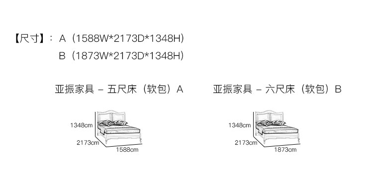 亚振安博网页版 - 五尺床(软包) 产品尺寸/示意图