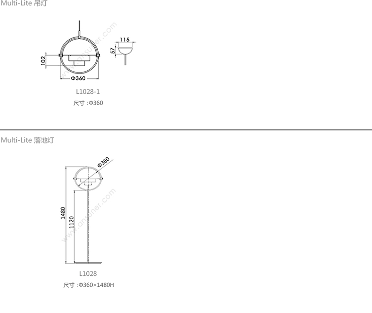 Multi-Lite 吊灯 系列尺寸/示意图