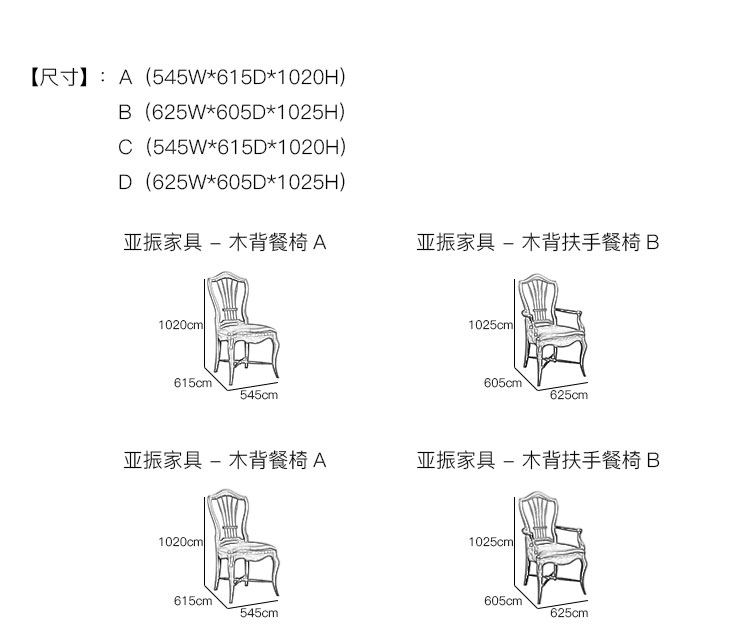 亚振安博网页版 - 木背餐椅 产品尺寸/示意图