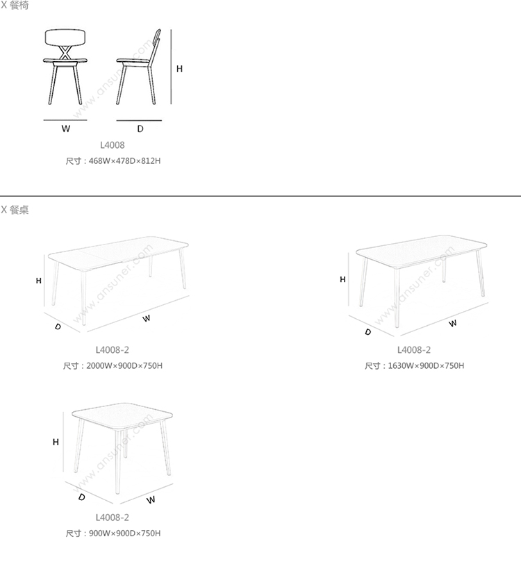 X 餐椅 系列尺寸/示意图