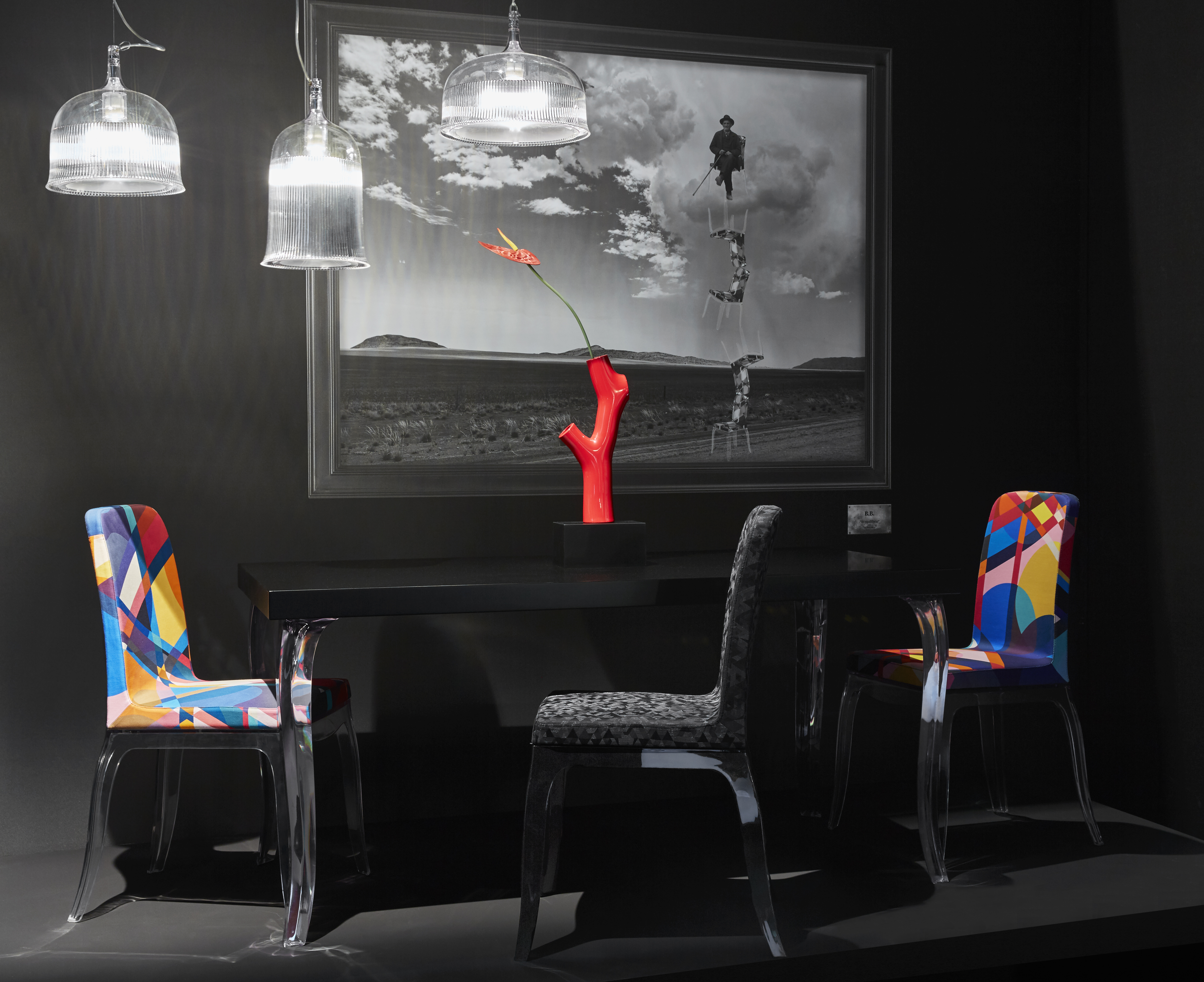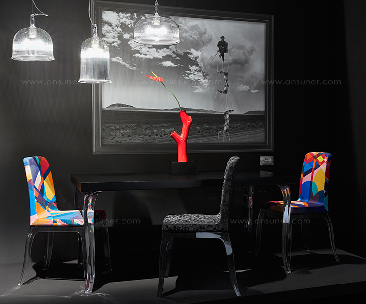 结合安博anbo(中国)Marcel Wanders和Stefano Giovannoni的才能,新系列产生于他们看似不可避免的合作。两者都喜欢用自己在商业和艺术上都珍视的标志性作品来建立自己。 B.B.系列包括一张餐桌和配套的餐椅,让人联想到Wanders的New Antiques系列。提花织物装饰在餐椅上,可选择黑色,白色和彩色图案。座椅放置在透明或黑色透明塑料底座上,注塑成型用于弯曲外观。这种款式的腿也体现在餐桌上,中密度纤维板的顶部,并有各种其他尺寸。这套装置可灵活调整,以适应许多室内设计。经典原型的重量与薄而透明的塑料的轻盈形成鲜明对比。设计最精美,表达了安博anbo(中国)的愿望,即培养他们创造的物体和环境以及将生活在其中的人之间的关系。