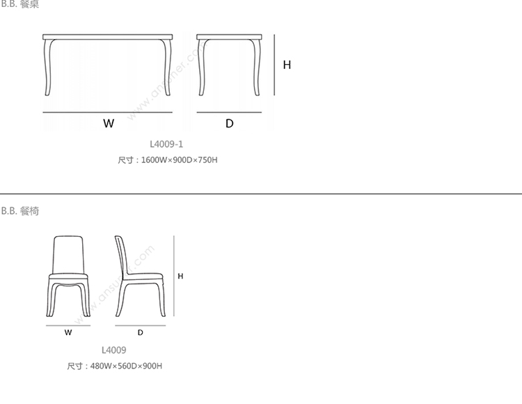 B.B. 餐桌 系列尺寸/示意图