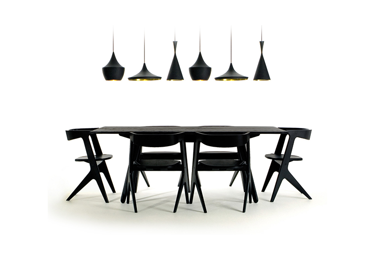 板形餐桌可使用自然漆或黑色漆完成。保留橡木的自然美,板坯收集是一系列以诱人的简洁的角度形式建造坚固的作品。表面被刷得很深,露出了颗粒。用黑色或天然漆完成。板坯收集包括一个酒吧凳子,椅子和桌子。