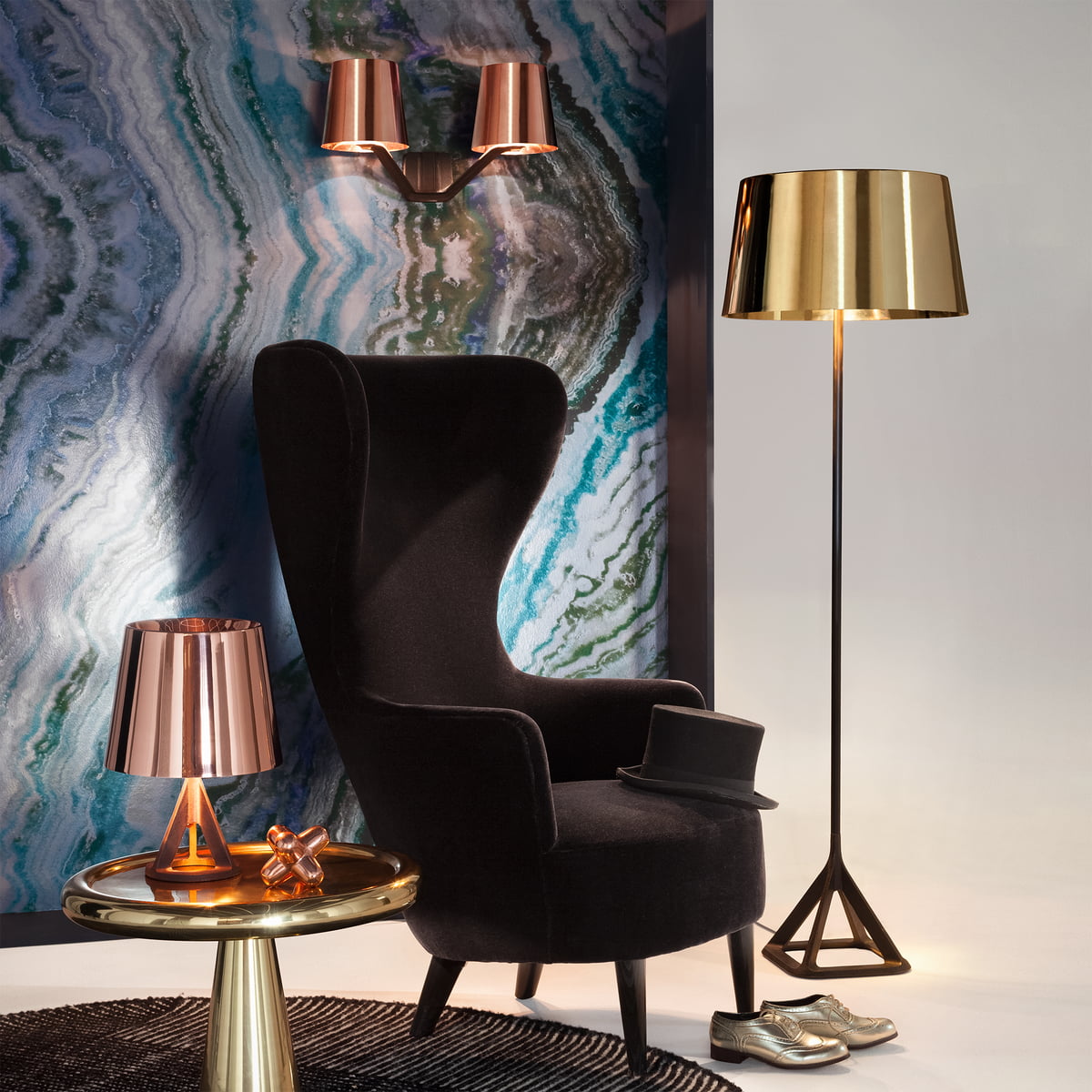 由Tom Dixon Space age, Art Deco or Pop设计的2013 Spun-sheet solid brass bronze——这三件极具表现力、偶尔会出现的安博网页版,每个人都看到了不同的影响。她说:“这是一件非常漂亮的作品。它的比例非常大,用手工抛光的纯黄铜薄板做成的曲线状,使鸡尾酒吧、餐厅或客厅立刻焕发出迪斯科的魅力。”