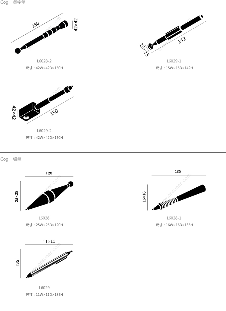 Cog 签字笔 系列尺寸/示意图