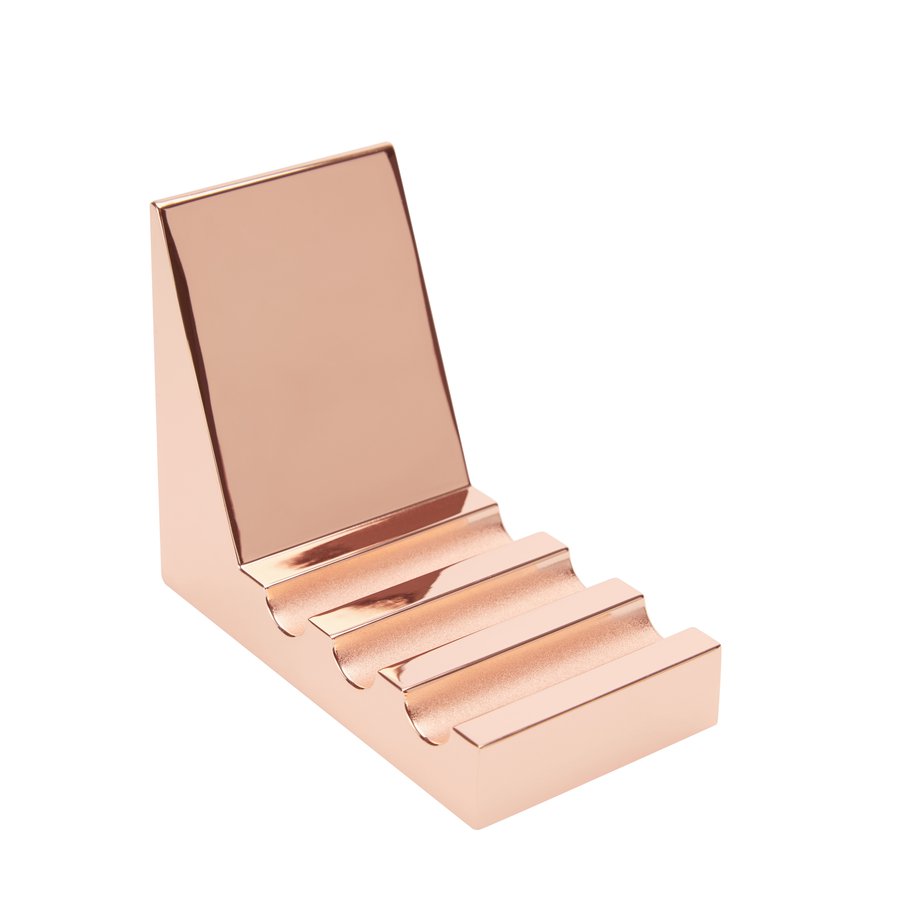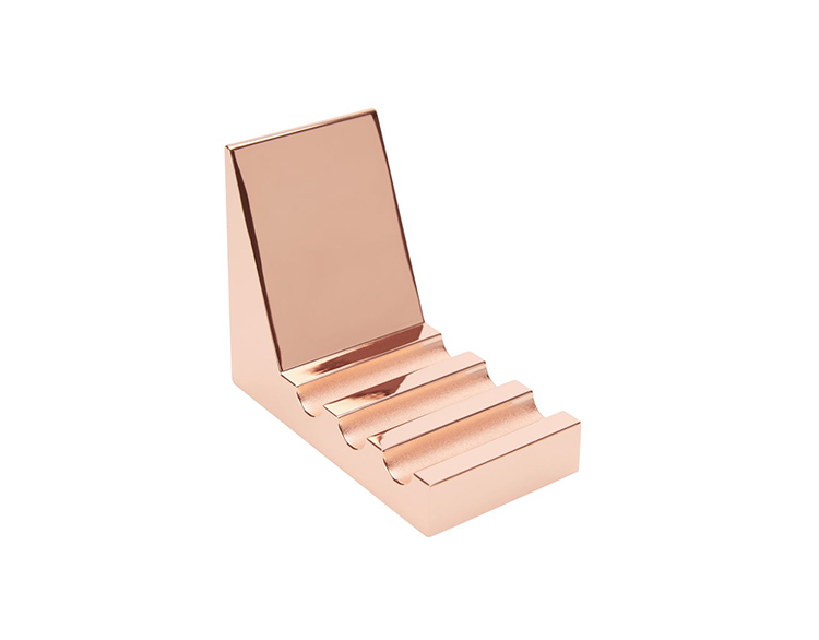 立方体平板架是由锌合金,镀铜,抛光和漆完成,汤姆迪克森标志蚀刻在基座。