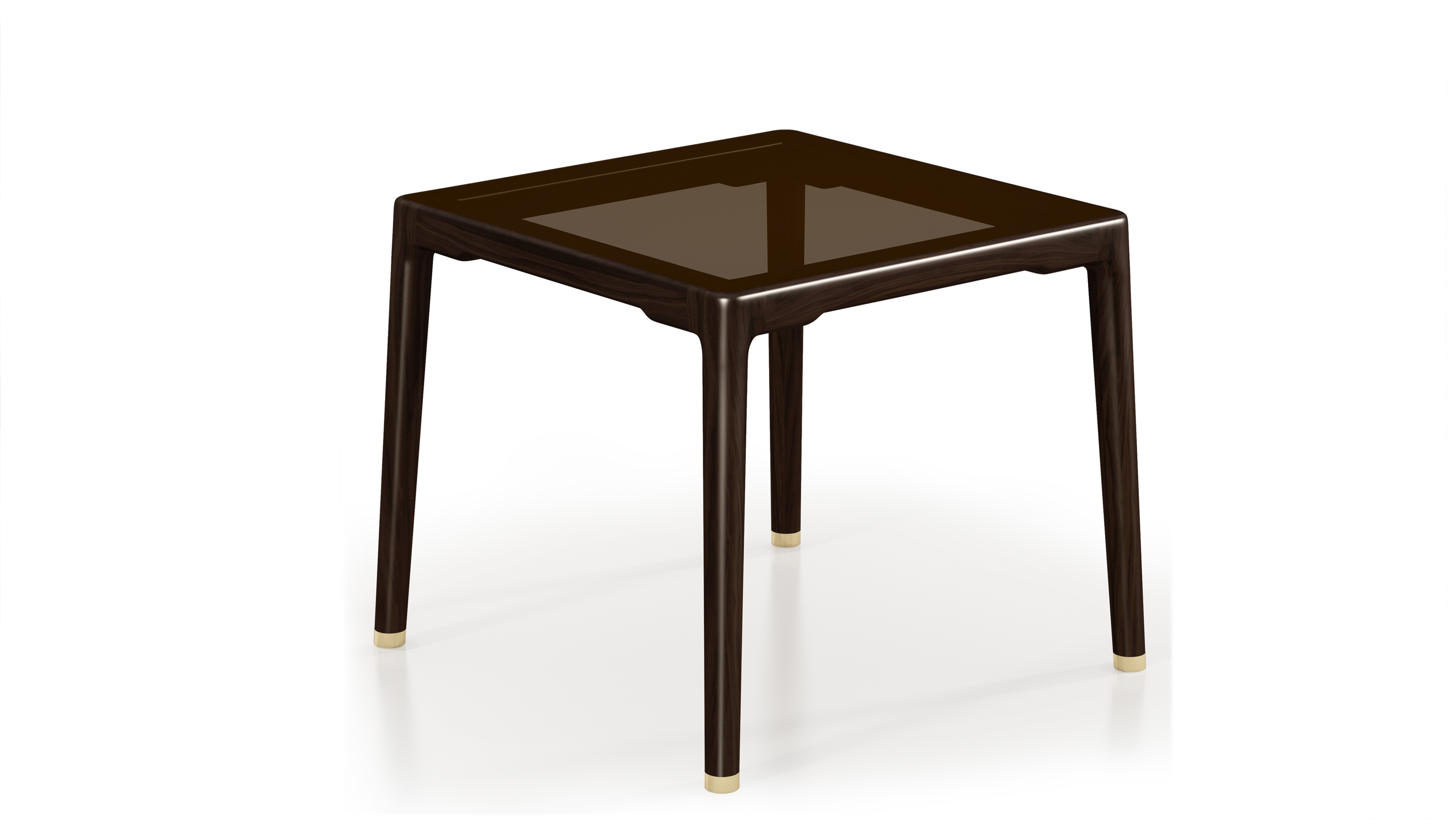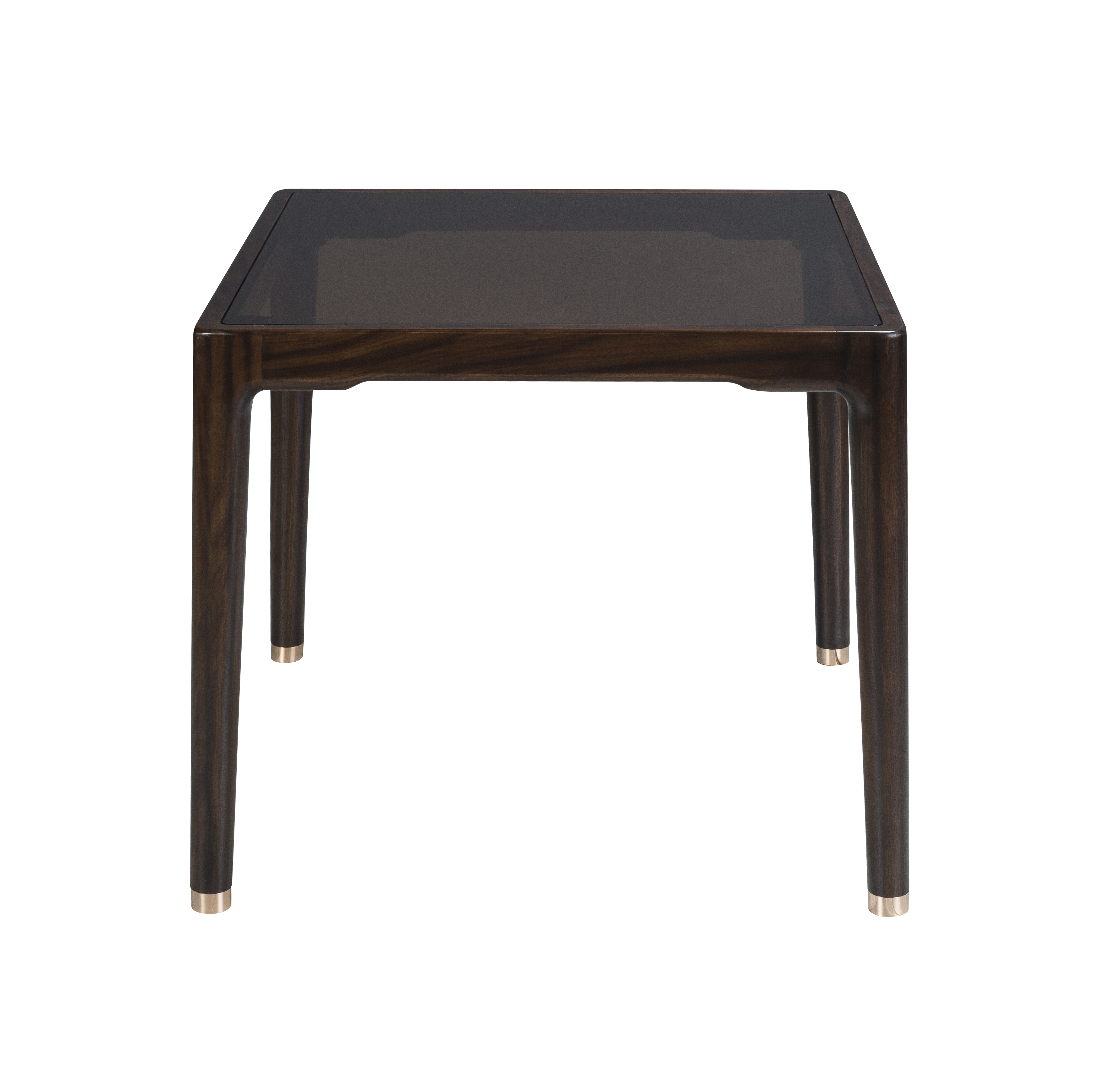 1.造型简洁精巧,以线为主,搭配茶色玻璃桌面,融入传统中式罗锅枨元素,通透灵动。 2.腿部内收,上收下分,具有很好的视觉稳定感,稳重大方。 3.铜脚设计,赋予中式韵味的同时以防磨损。