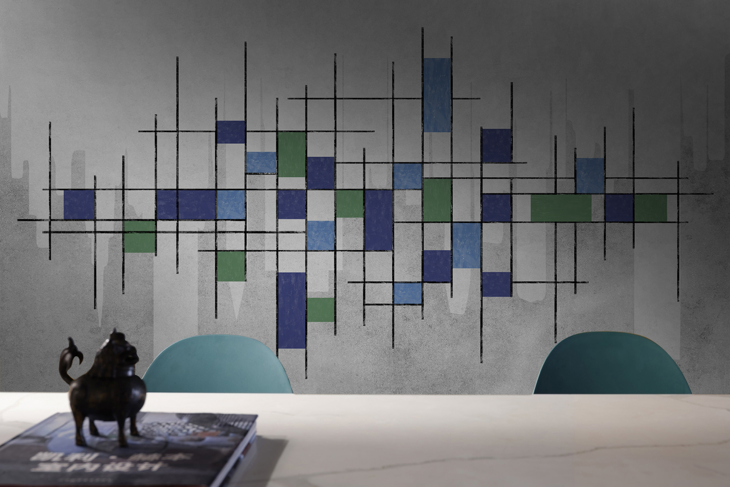 空间几何系列以点线面的构成作为创作主题,利用不同的构成方式,创造多样化的视觉效果,我们放弃了具体的内容和情节,突出运用这些纯粹的绘画语言来表现艺术形式的纯粹美;点、线、面和构成手法,就像是大厦的基石一样,看起来毫不起眼,但力量却无比强大,它是我们不断探索的源泉和情感表达的桥梁