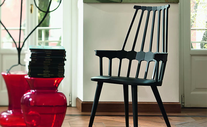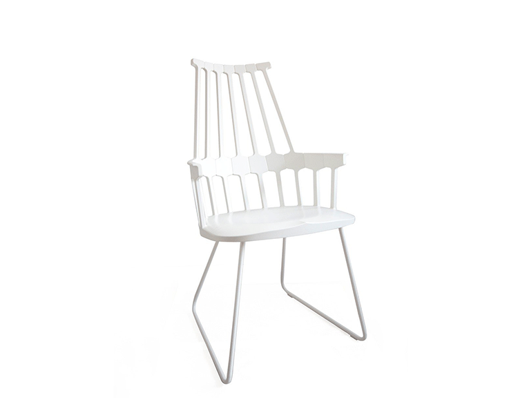 温莎风格椅被冠以乡村风格,但并非一成不变,在不同时期不同阶段又融入新的设计元素。Kartell的这款产品再一次享受重现经典的设计快乐,国际知名家居安博anbo(中国)Patricia Urquiola为温莎椅(Windsor Chair)打造了一个这款新的造型。回归十八世纪英格兰的辉煌时期“梳背”椅的特点,整个框架用亚光材质,靠背的7个分支结构朝着椅腰部位向下延伸,在一个加固六角形圆圈处与纤细的轴汇合,与椅座合为一体。聚碳酸酯材质的使用赋予COMBACK一种轻盈的质感和当代风格。浸透在黑色COMBACK梳背椅里的那一分淡定从容,能让人气定神闲,默默却又不留情面地将浮华虚荣隔在门外。因为不存在彩色光谱里,白色可以说并非真正色彩。纯白色Comback Chair梳背椅,唯美得让人难以抗拒。那种与世无争的清雅,好似刚刚落入凡尘的花瓣,昭示宁静与自然。这款Comback Chair 来自意大利的创新品牌Kartell,以发梳为灵感,回归18世纪英式风格,整齐对称的典雅扮相,表现出一份沉稳内敛的韵韵意涵。木质椅角的运用,让复古气息升华其中。配搭塑料椅身的现代风格特色,不愧为一份跨越历史的新时代作品。荣获2011年Wallpaper设计奖殊荣。