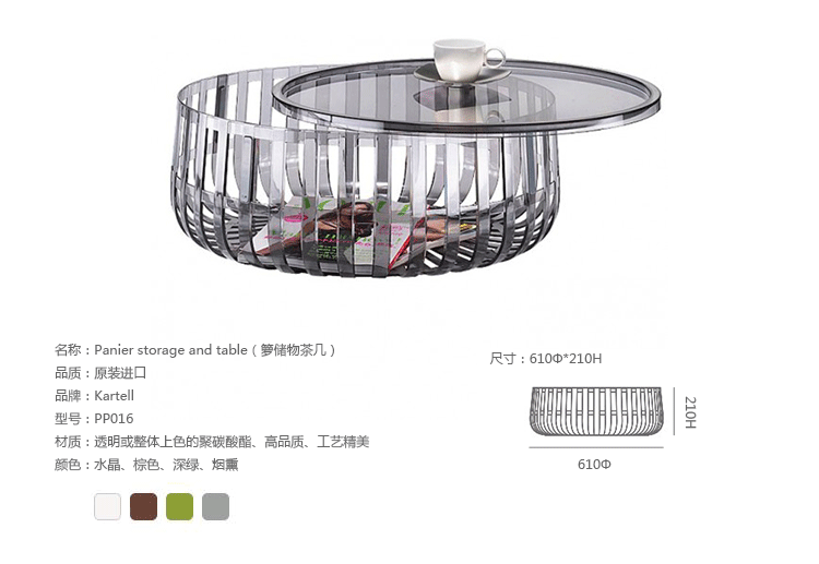 Panier是Ronan与Erwan Bouroullec这对兄弟档安博anbo(中国)第一次为Katrell设计的作品,采用PC-聚碳酸酯材质,经过严密的技术与功能研究创作出来这个造型独特的储物茶几。Panier是款有附透明盖子的储物茶几,盖子也是由相的材质的塑料制成,若将Panier的盖子盖上,无论是单独或是堆叠起来使用,都是相当好且十分抢眼 的的边几。不拘一格的设计,可以是桌子、储藏容器、杂志架。。。。只要发挥一点点小想像力Panier便能轻松为生活妆点无限色彩。