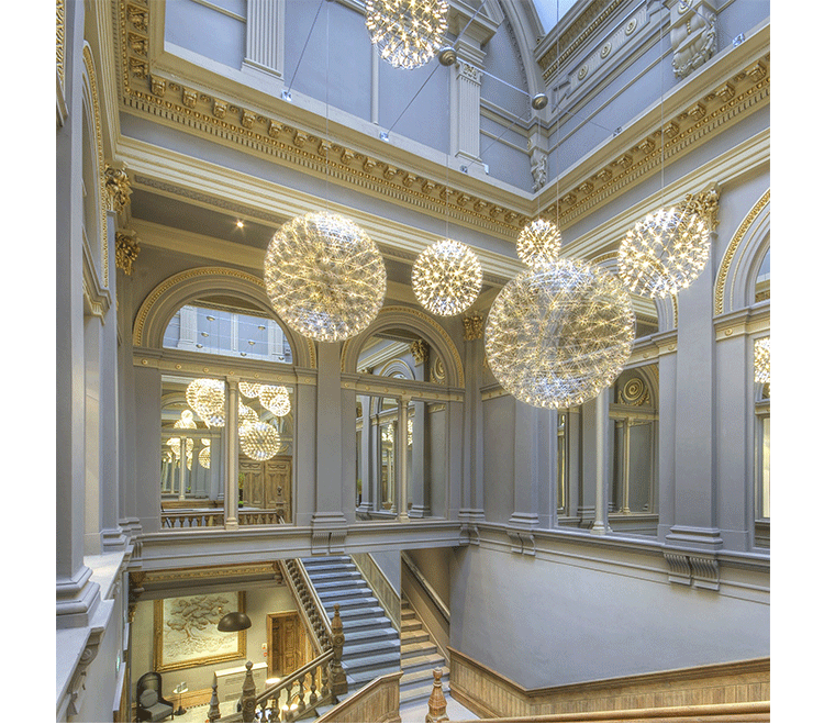 "The beauty of light was redefined with the Raimond pendant lamp basing on pure mathematics. Finally it is possible to watch the universe and enjoy the starlight while the night sky is cloudy. The Raimond pendant lamp enables this with its numerous LED’s that seem to float in space like real stars.Raimond consists of complex stainless steel grid nettings. The single trams from the netting are (similar to the planet orbits) arranged around an imaginary point.The Raimond Pendant Lamp is also available in different sizes and each one of them in a dimmable and non-dimmable edition."
