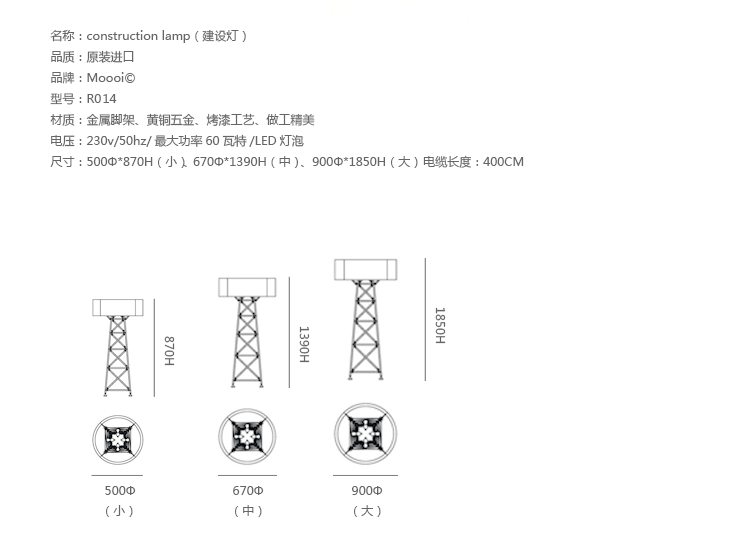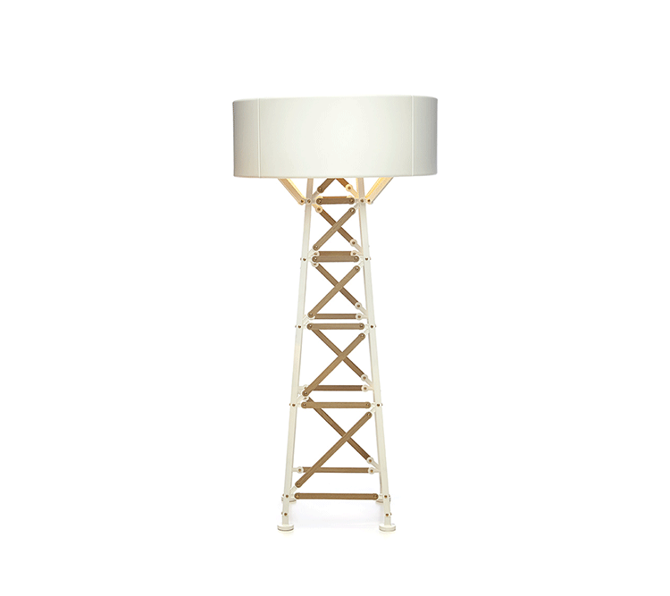 "The Construction lamps are inspired by metal factory construction,electricity poles and constructive elements. This collection, like other designs from Joost, originate from his inventiveness and curiosity combined with expert skills and industrial tools. He started playing with the tools and bolts present in his giant workshop and ended up constructing and creating a new, exciting design!Joost van Bleiswijk was born in Delft and graduated from Design Academy Eindhoven in 2011. Since then, he's mainly working on his own collections. In addition to his own work, Joost designs for top companies worldwide and his pieces have been featured in international publications. Joost's works and collections are exhibited and sold worldwide at galleries and museums.Construction lamps feature a die cast powder-coated aluminum frame in your choice of white or black. White lamps are offered with wood slats. The small size is offered with a push+hold dimmer while the medium & large sizes are offered with a slide dimmer. Includes 9.8 feet of black cord. Medium and large lamps have adjustable lamp holders. UL listed."
