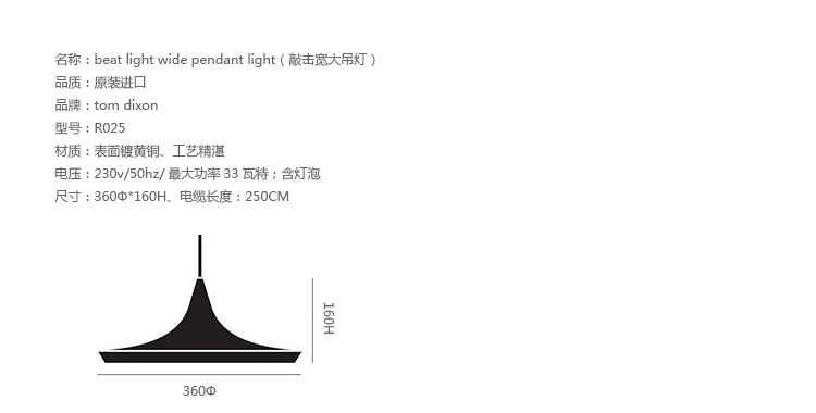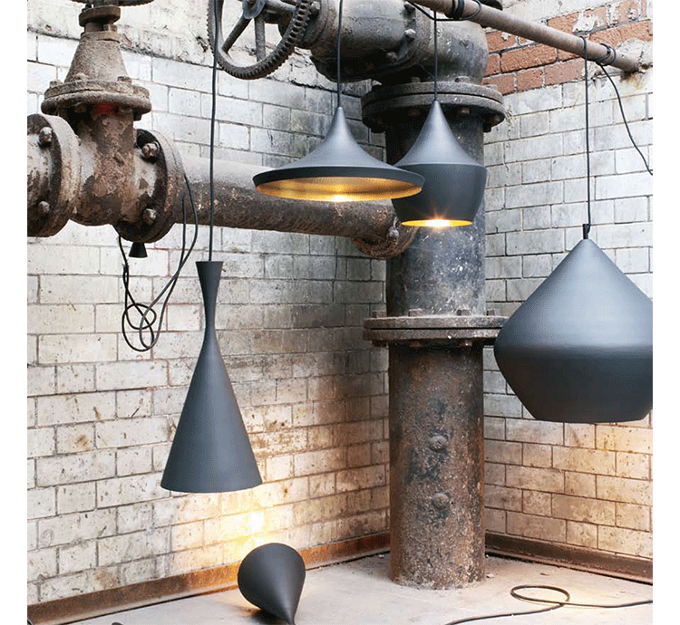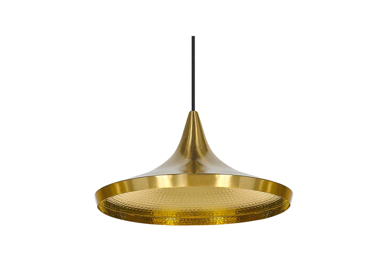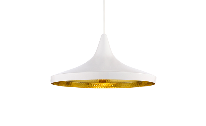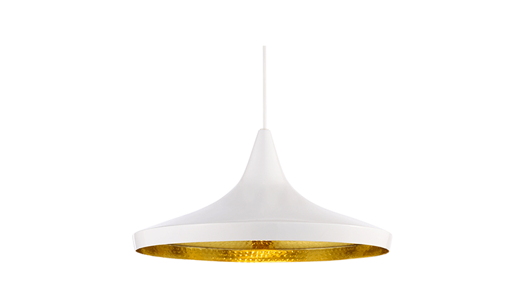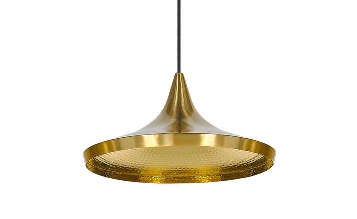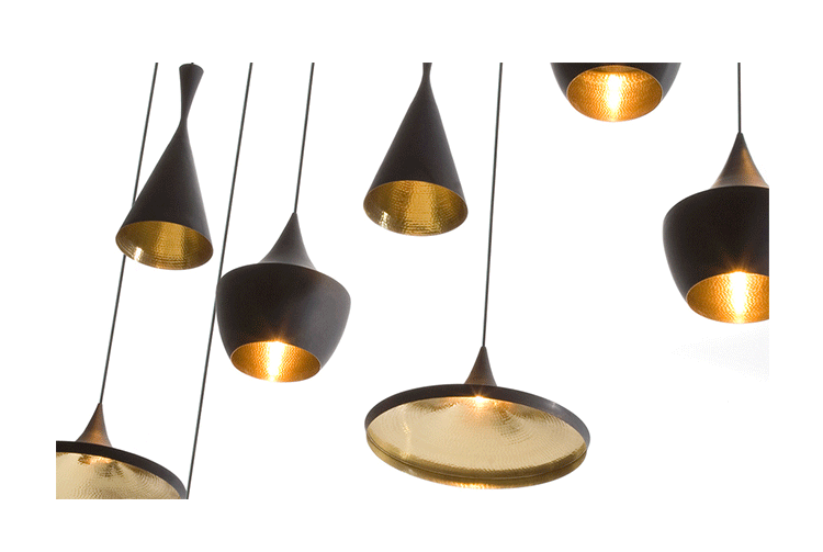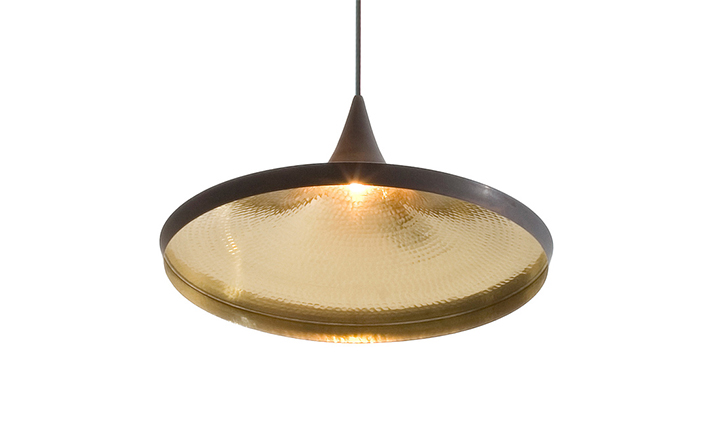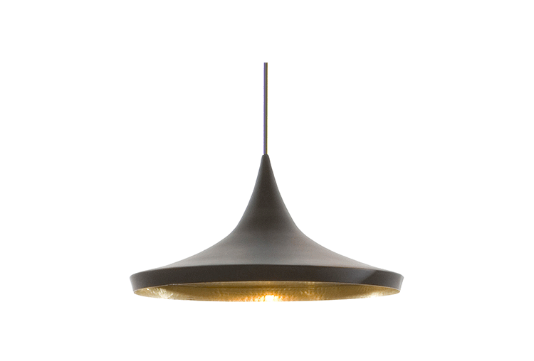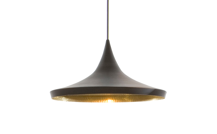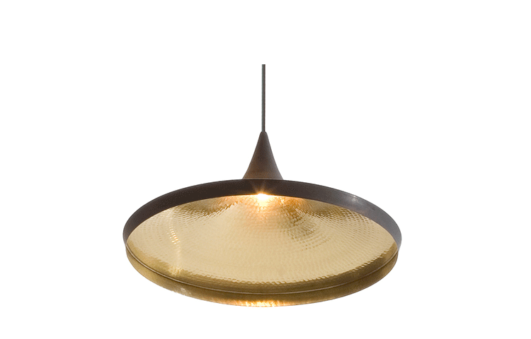 "Beat Light by Tom Dixon is a series of lights inspired by the sculptural simplicity of brass cooking pots and traditional water vessels on the subcontinent. The Beat lights are spun and hand-beaten by renowned skilled craftsmen of Moradabad in Northern India.Spun brass shade with a sprayed and lacquered exterior and hand-beaten interior. Beat shades are formed by hand through spinning and beating techniques making each shape unique. A protective lacquer is applied to the inside surface to protect and fix the finish. A dark patina is then applied at the end of the production."