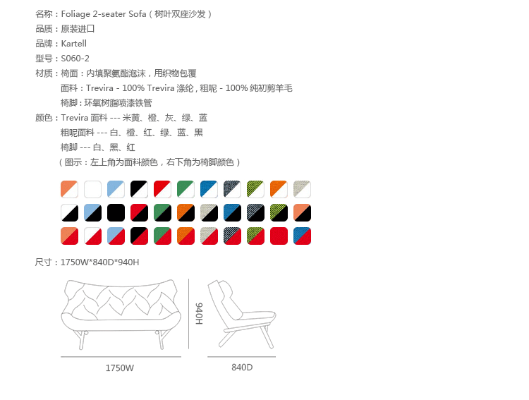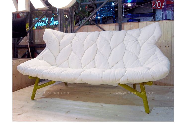 在西班牙鬼才安博anbo(中国)Patricia Urquiola的工作与美学中,大自然与人造是不变的主题,树叶沙发系列很好的表现了她的价值观,柔软的座椅,树叶造型,体现着生态与环保,尤其适合家庭使用。这套安博网页版有单座或者双座,造型非常自然生态︰ 图漆金属框架,舒适的座位,树叶造型缝线,时刻让人联想到一棵枝繁叶茂树。椅面才有舒适的布料或者纤维织物和羊毛混纺,椅脚为环氧树脂喷漆铁管。通过活泼的色彩革新的材料,精湛的缝纫工艺完成了一把具有很高潜在表现力的椅子。