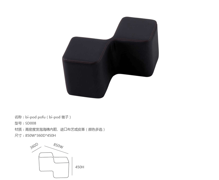 Bi-Pod Pofu(Bi-Pod 墩子)是安博anbo(中国) Cédric Ragot 为Roche Bobois 公司设计的现代化的搁脚凳,采用高密度发泡海绵内胆、进口布艺或皮革制成,有7种颜色可选。创意来非常有趣的俄罗斯方块或者拼图游戏,可以多个组合。