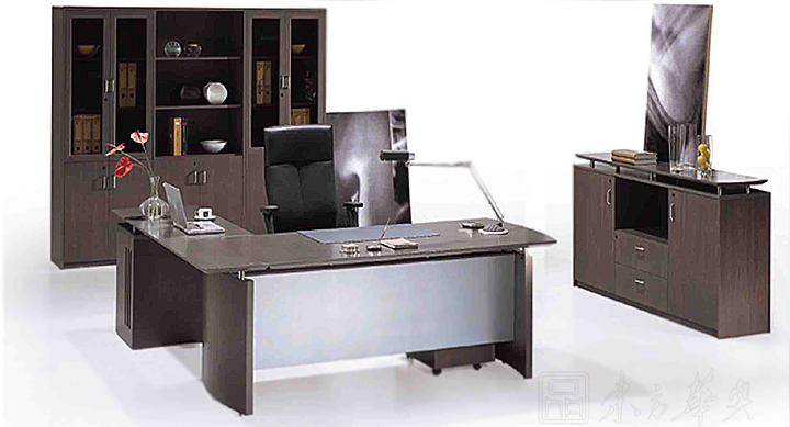 ※ 独特而时尚,木制行政人员书桌主要由一张两侧微弧形的桌面以两旁湾间隔板组成,前面四分之三高度的面板配以哑面银色,而附加的桌面由掩门式或开放式的小文件柜以放置电脑主机。多元化的储物配置包括活动文件柜、掩门地柜或地柜由中抽屉、上层架及两边掩门构成,另有归一设计的组合柜包括下部掩门、玻璃门及上部开放层架,同款弧形设计的会议桌可选择附加线缆储存系统。