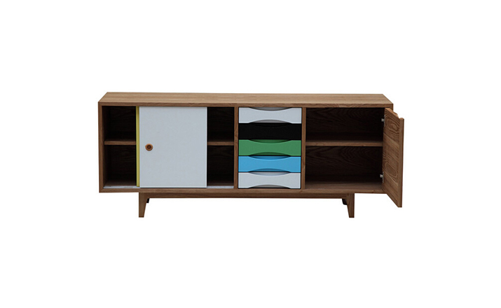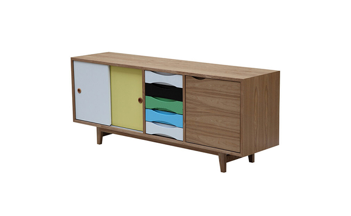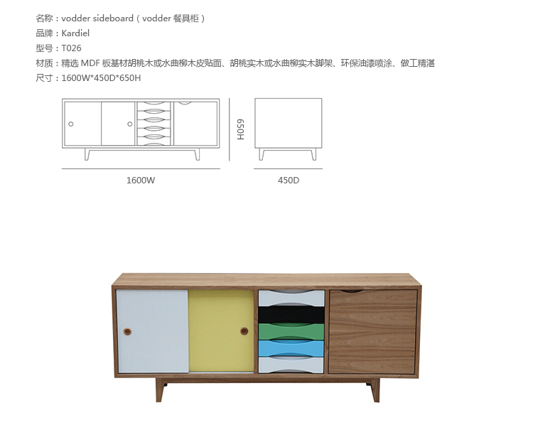 vodder sideboard(vodder餐具柜),Arne Vodder设计的作品,是Kardiel公司制作的经典实木安博网页版,具有世纪中期的现代风格,加了少许复古现代主义色彩于其,微妙的局部拱曲线呈现在右手面对推拉门和5个拉出抽屉。在现代主义的存储安博网页版上,Finn Juhl和Arne Vodder最先尝试胶木和天然木的组合运用。这是大胆的创新,他们结合传统的新鲜的新兴技术与现代主义的概念。制作采用精选MDF板基材胡桃木或水曲柳木皮贴面、胡桃实木或水曲柳实木脚架、环保油漆喷涂、做工精湛,是您理想的选择。