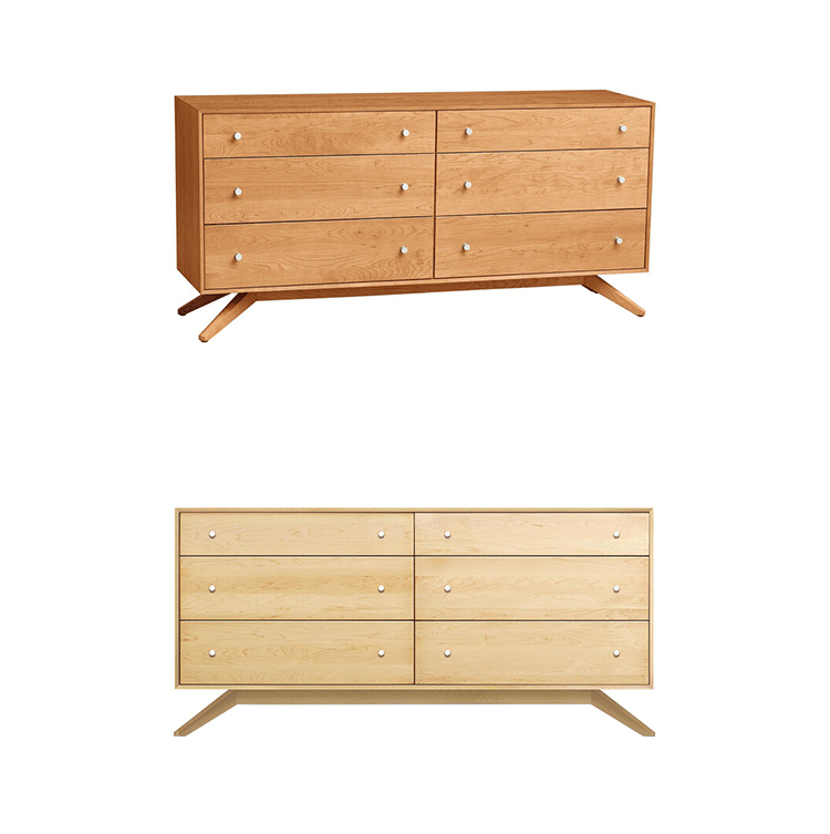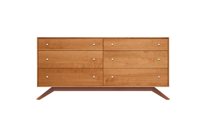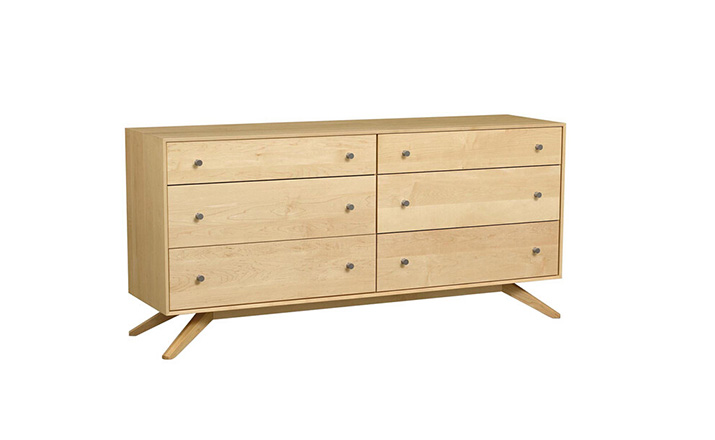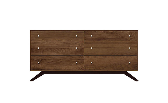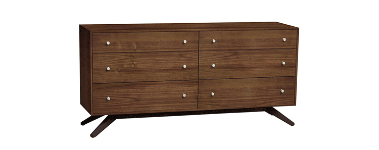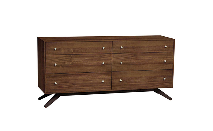 astrid 6 drawers dresser(阿斯特丽德6抽梳妆台)是Copeland Furniture公司astrid实木梳妆台系列之一,宽大的八字形脚架非常吸引人注目,制作并非易事,它其实是一个大工程,同时能引发无限期望和激情,6个平滑抽屉,可以给与提供许多存储空间。制作采用精选MDF板基材、进口美洲胡桃或水曲柳或枫木皮贴面、实木脚架、环保净味油漆喷涂、做工精湛。