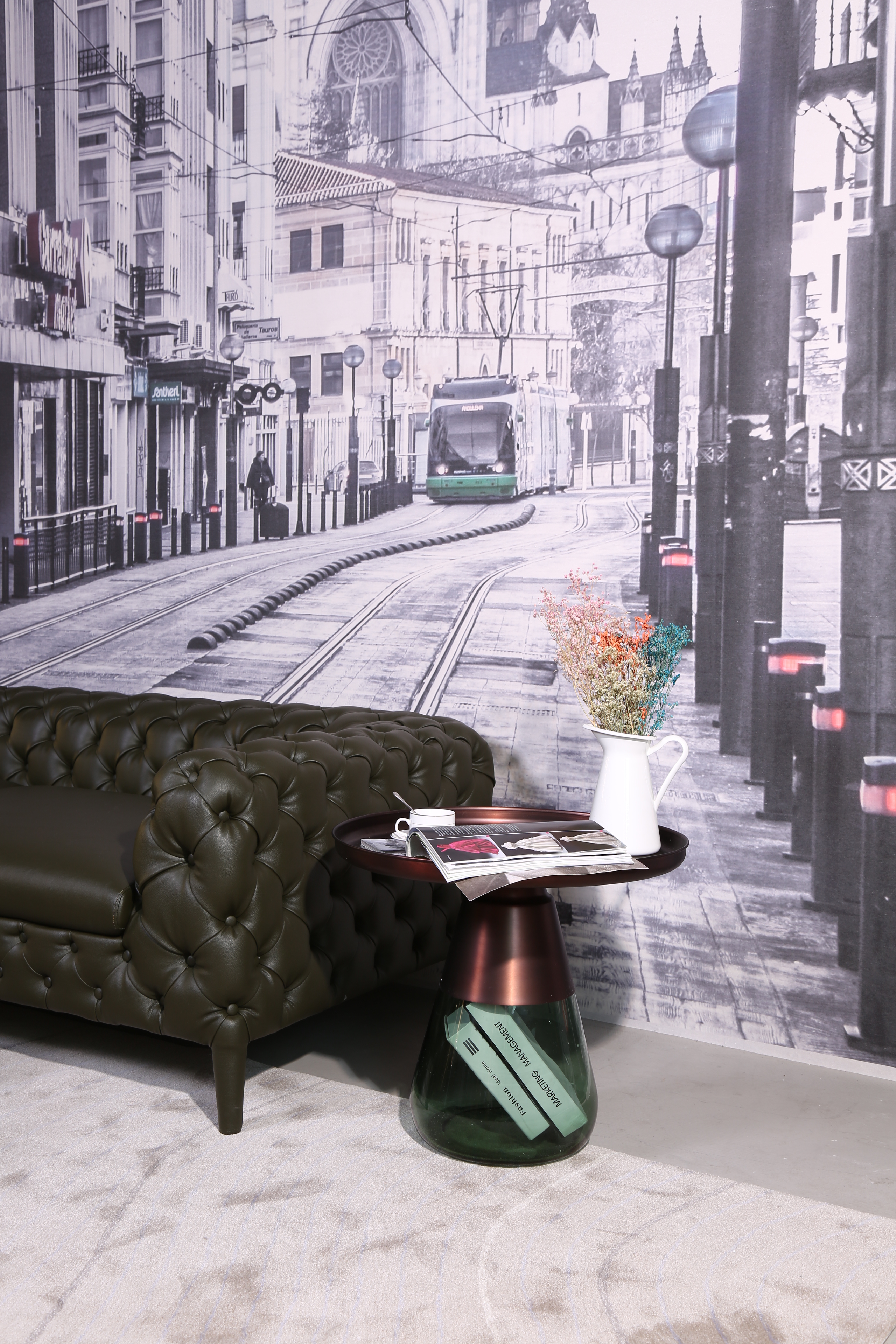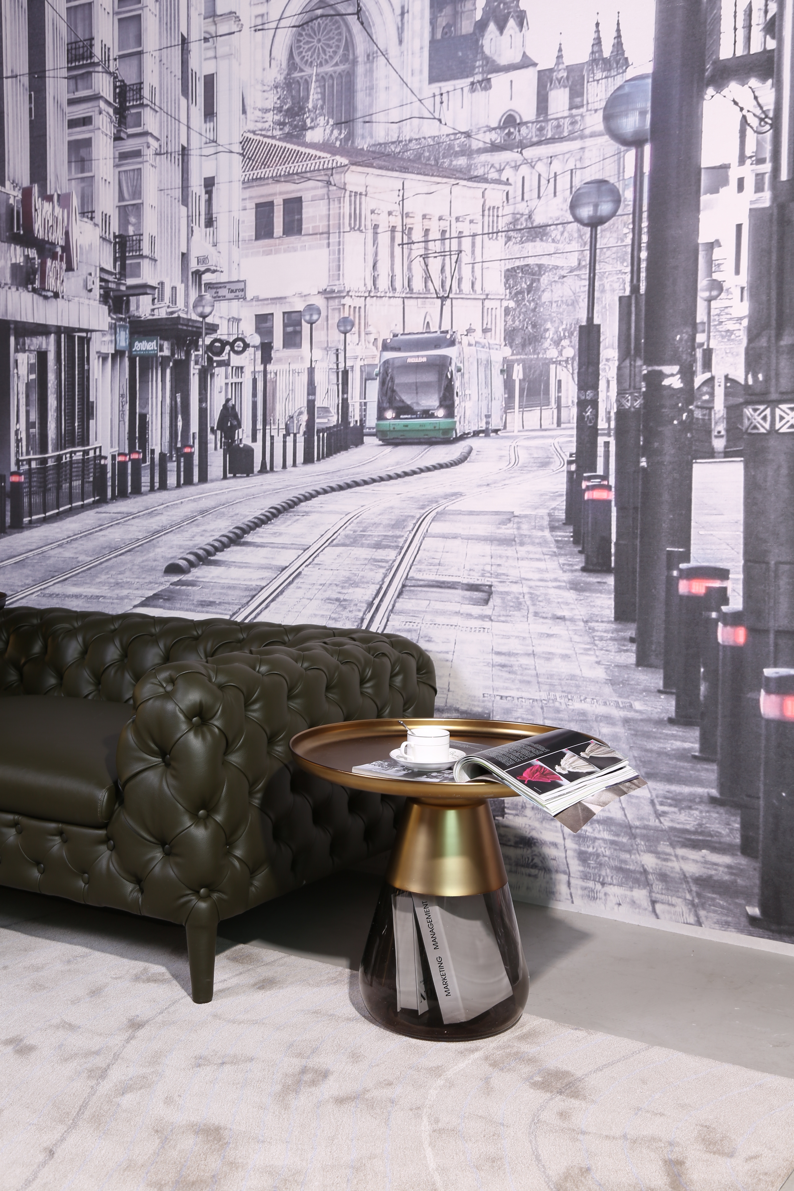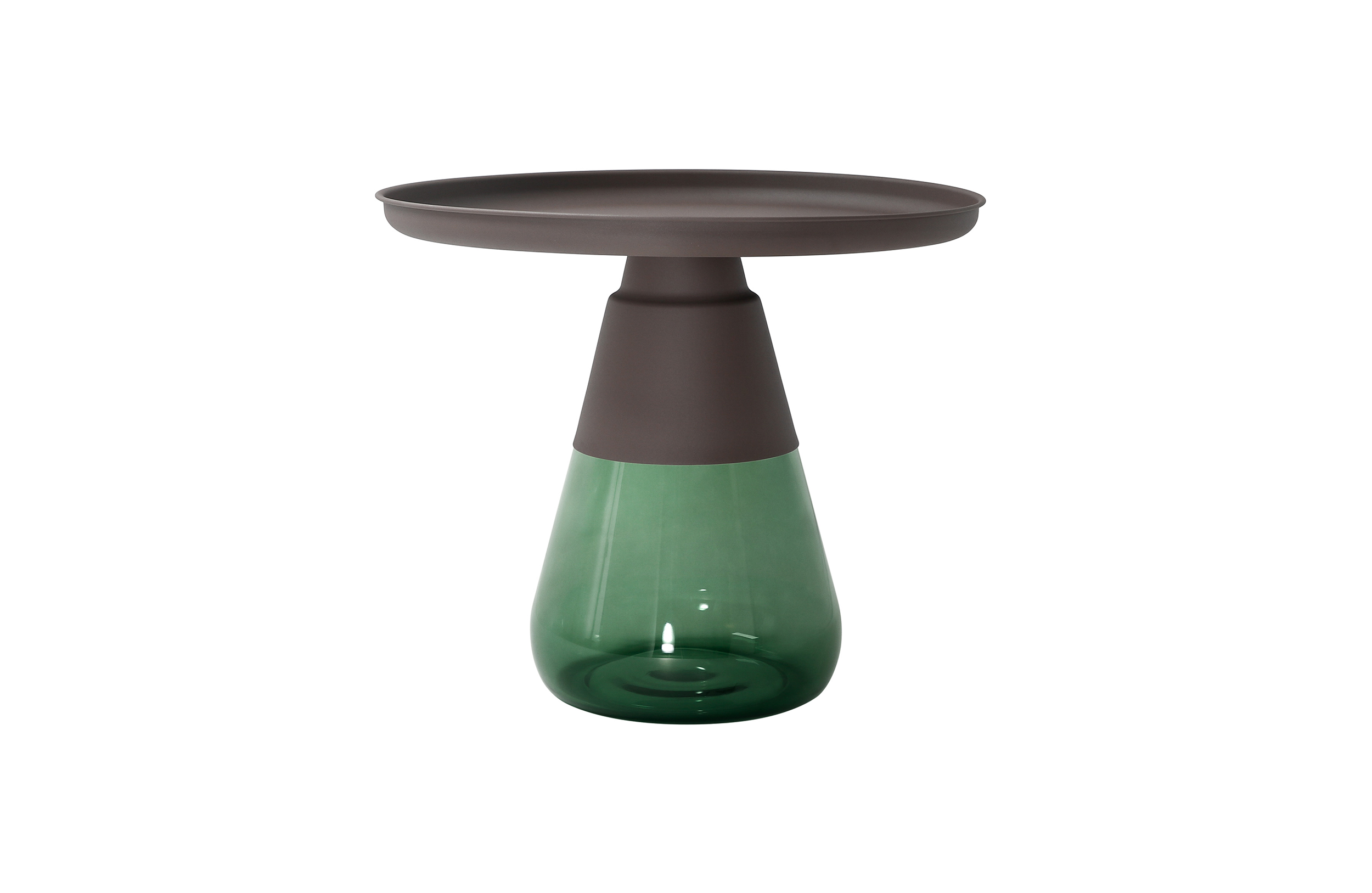 这款半透明带有色彩的玻璃和铝合金组成的手捧咖啡几,有着穿越历史长河的影子,竟像是宫廷画中拿出来的一般,底座的玻璃带给人温润如玉的视觉和触觉的通感。