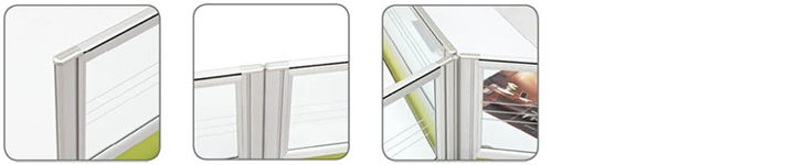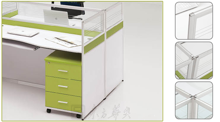 特 点:优质铝合金型材框架,组件简化,结构稳定,并可重复拆组使用;面板可任意拆卸组合,可随意组合布色,具多种造型简捷有力,可营造办公环境整齐划一。